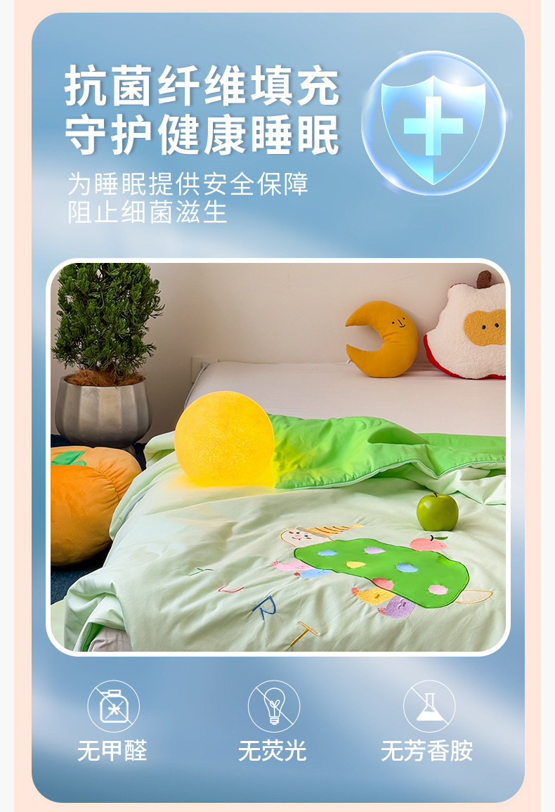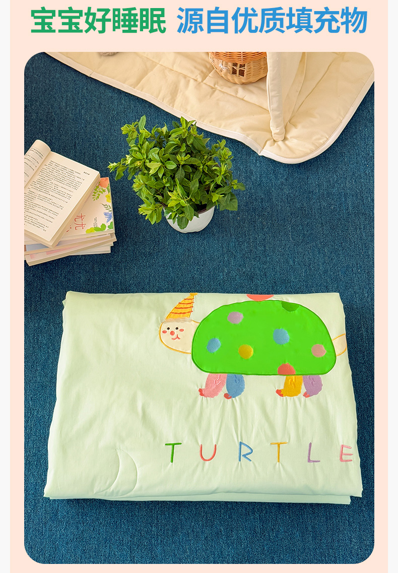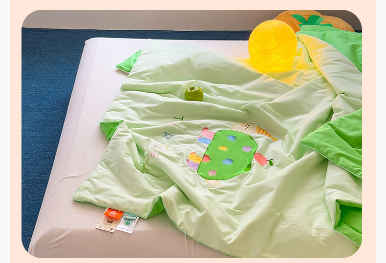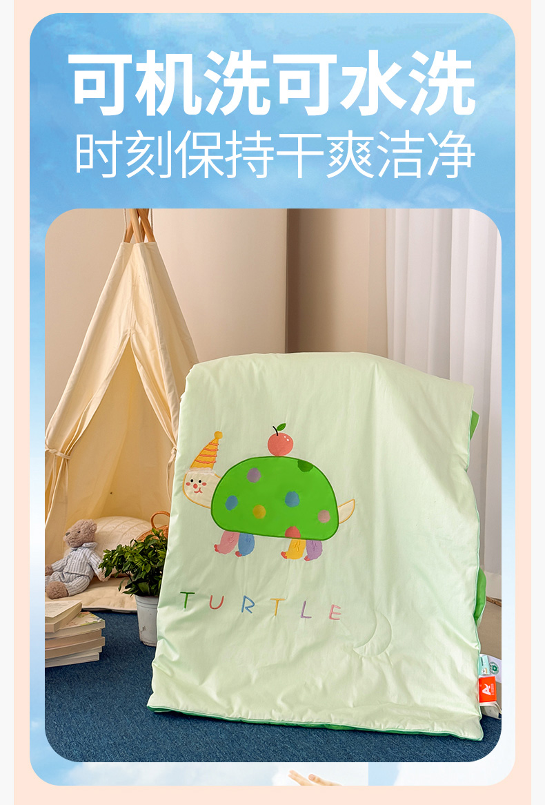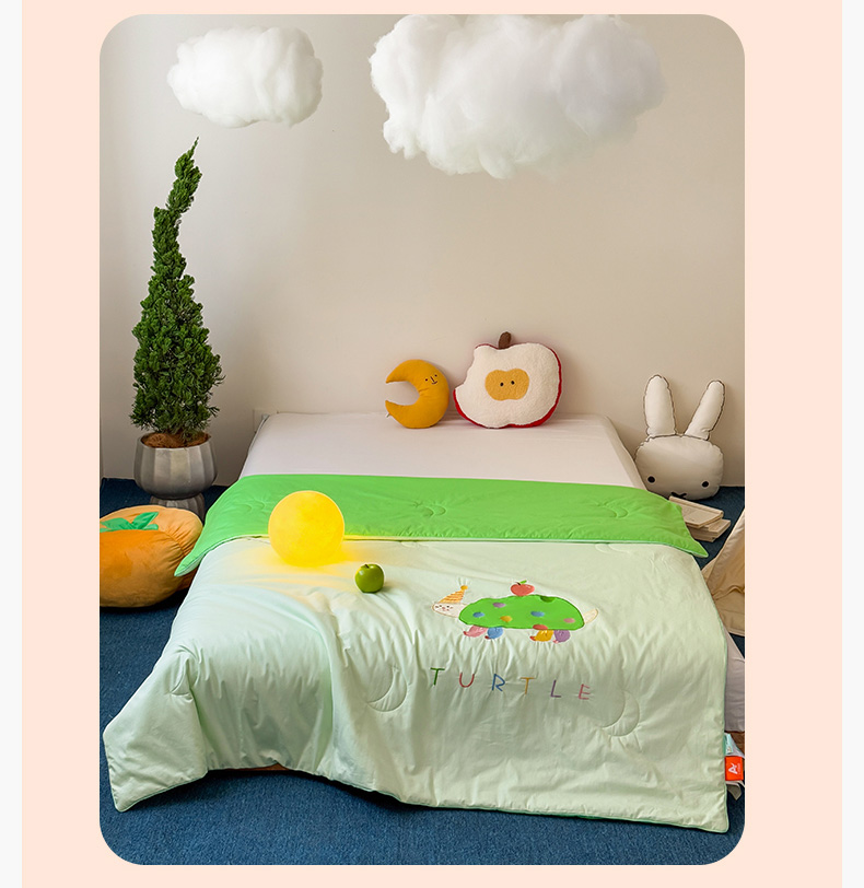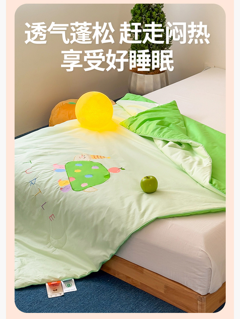 商品名称:2025新款快乐多巴胺纯棉夏被 绿色彩虹小恐龙