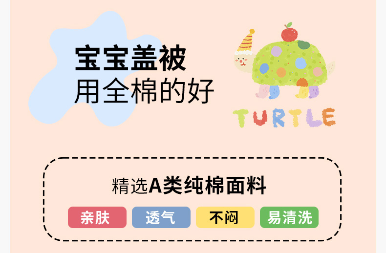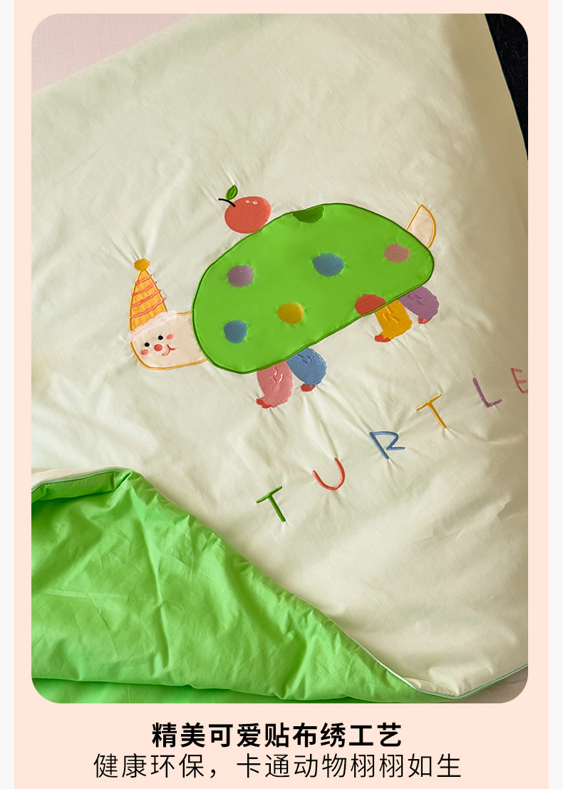 (总)喜多兔儿童家纺 2025春夏新款小软萌贴布绣纱布被,粉色软萌小兔,卡其色软萌小熊,蓝色软萌小象,绿色软萌恐龙,组合图仅供展示