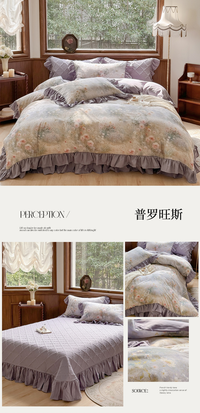 (总)胜权家纺 2025秋冬新款全棉法式13372数码印花夹棉床盖四件套系列,花非花粉,花非花绿,花海绿,锦绣繁华粉,锦绣繁华绿,妙颜粉