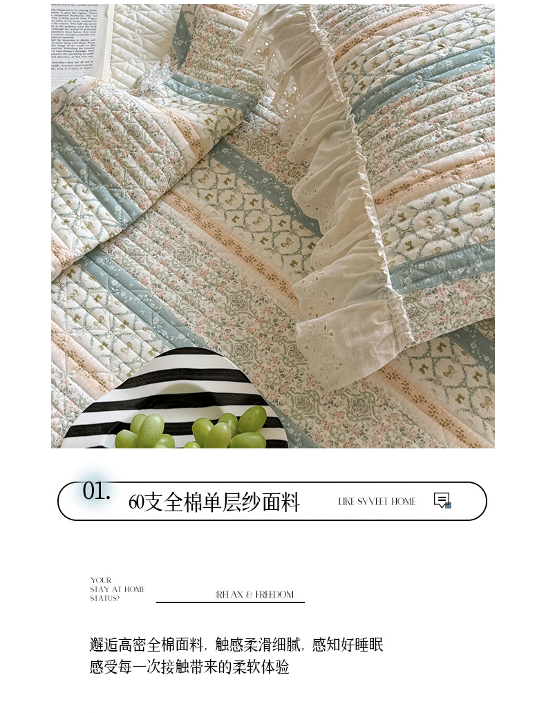 (总)麦伦家居 2025多功能床品全棉纯棉A类有氧双层纱+豆豆绒四件套荷叶边系列,组合图仅供展示不可下单,星星人,童梦木马,糖炒栗子,花田粉兔,白月光,桃夭夭,豹纹猫咪,空谷幽兰,晚秋,花棠,莫奈花园,蒂芙尼-粉,青芜,花样年华,椿野