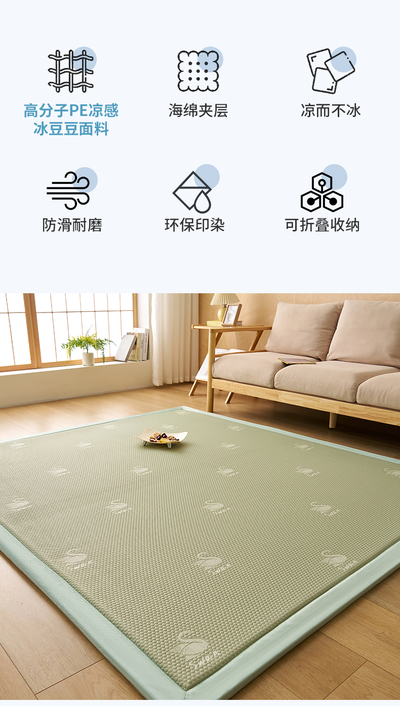 锦丝钰床垫 2025新款真凉感冰豆豆天鹅系列地垫 冰豆豆-天鹅绿