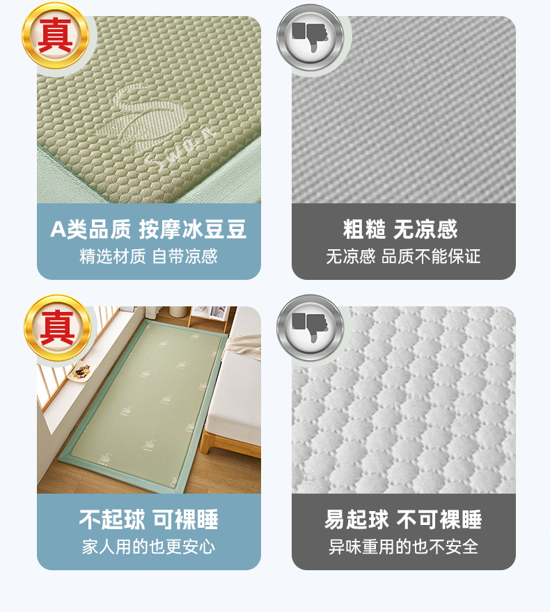 • 91家纺网 家纺一手货源 找家纺 锦丝钰床垫 2025新款真凉感冰豆豆天鹅系列地垫 冰豆豆-天鹅绿