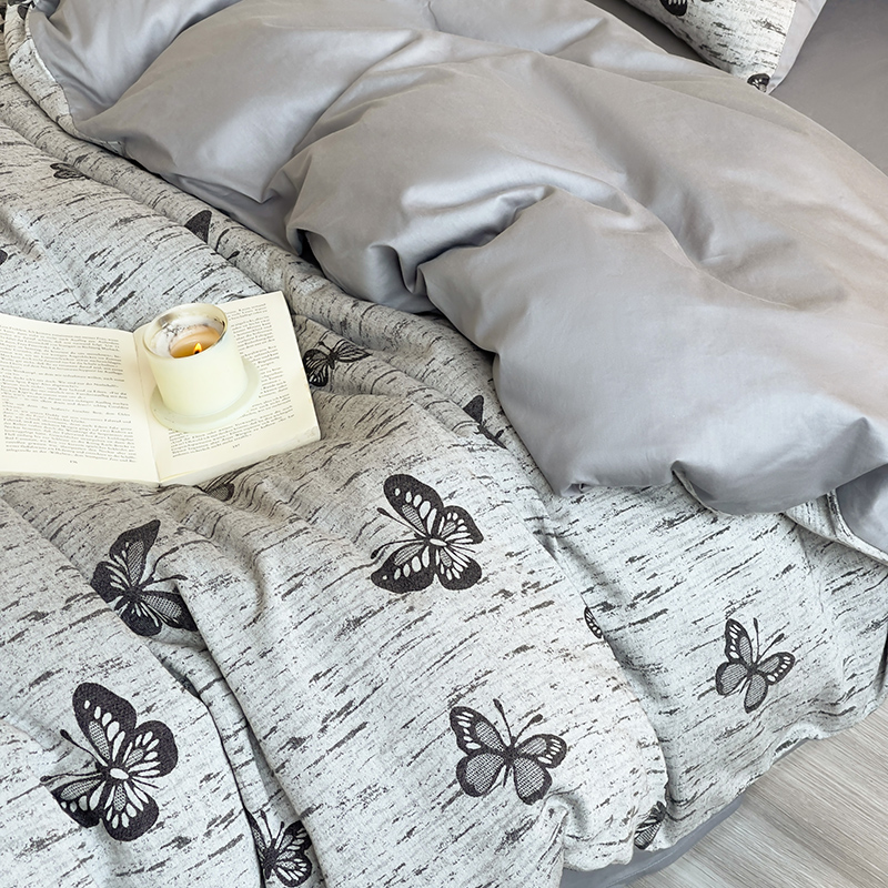 赛丽雅 2025新款60s全棉大提花纯棉简约轻奢全棉双层纱四件套 蝶羽