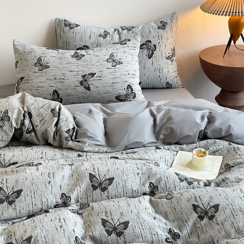 总(赛丽雅)2025秋冬新品130克加厚复古风印花磨毛四件套,风木槿,可颂,暮雪-灰,悄颜,秋恋-红,砚秋