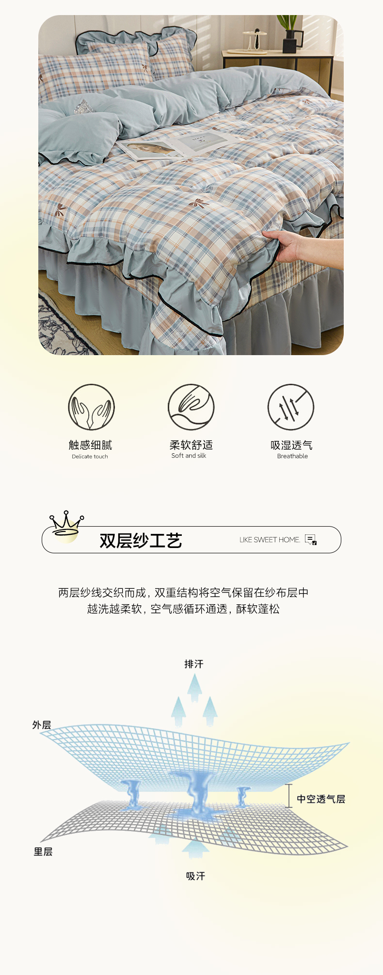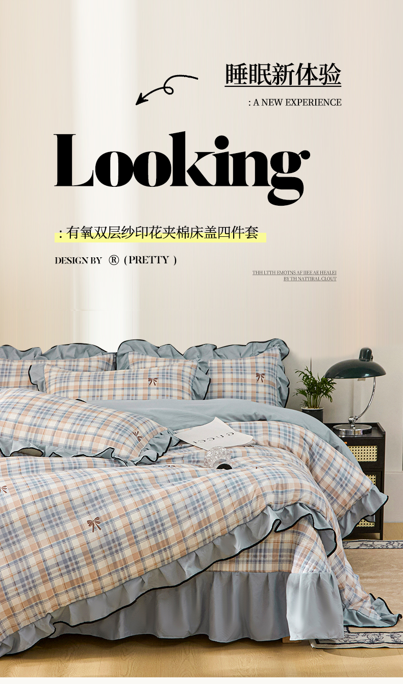 当前位置: 91家纺网 > 商品网购 > 床品套件 > 四件套 > 其它四件套 > 铠畅家纺 2025新款有氧双层纱印花夹棉床盖四件套-终版 妮卡