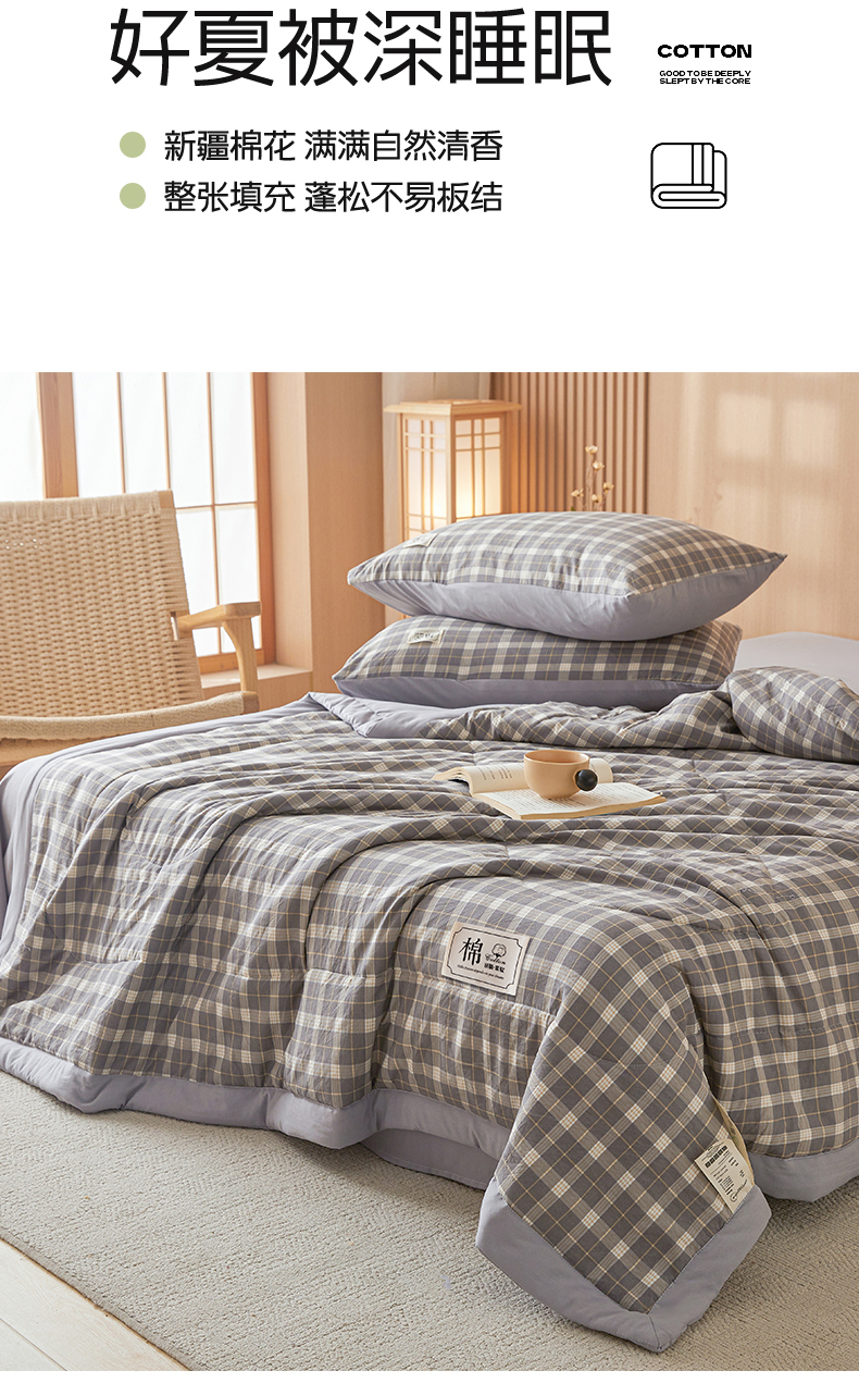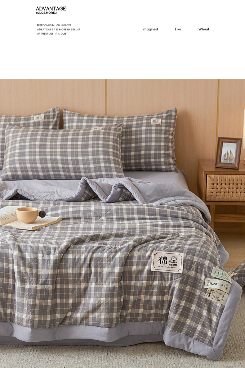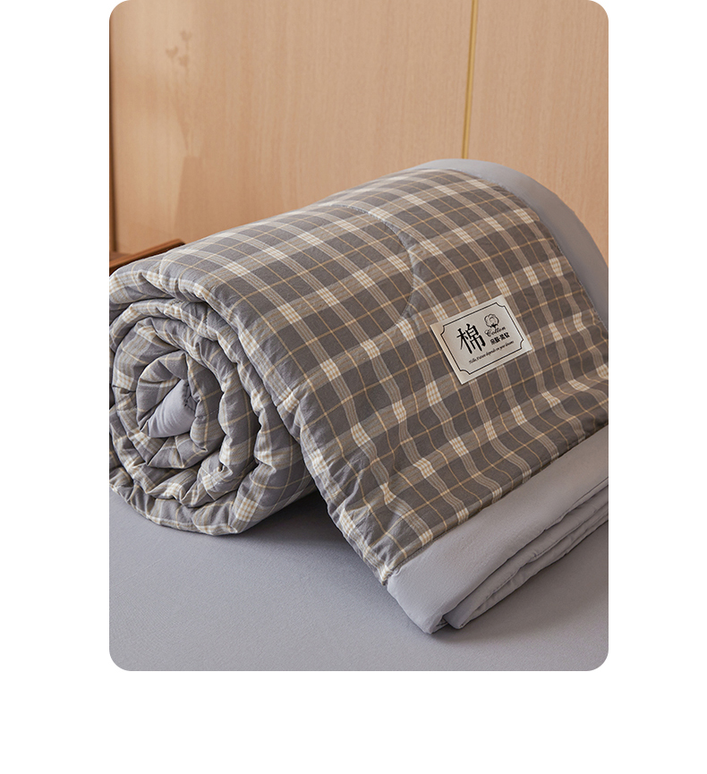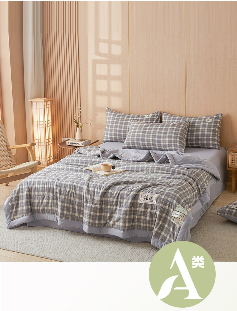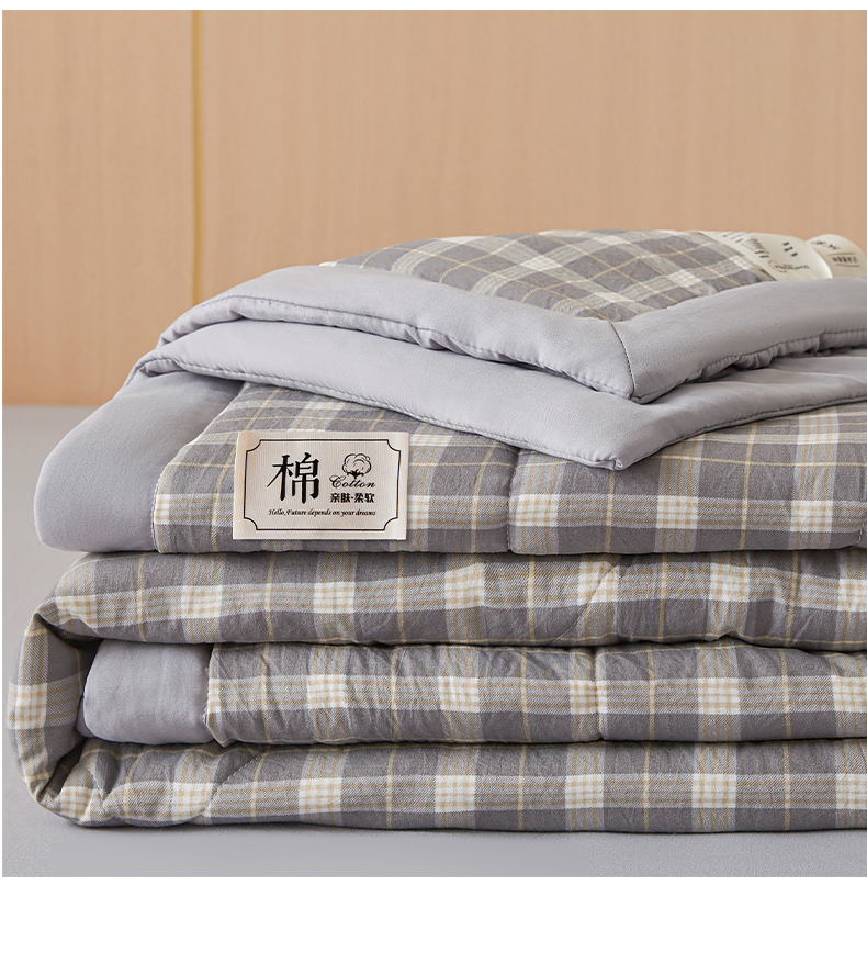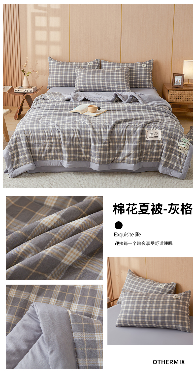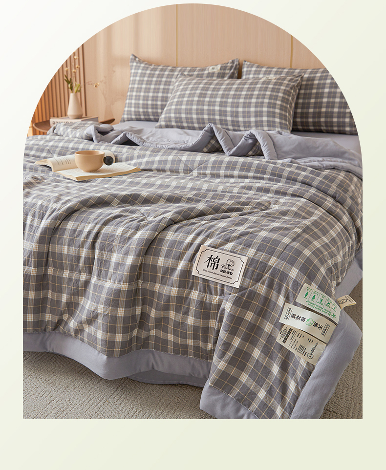 • 91家纺网 家纺一手货源 找家纺 悦织语 2025新款A类色织水洗棉夏被新疆棉花被空调被四件套 棉花夏被-灰格