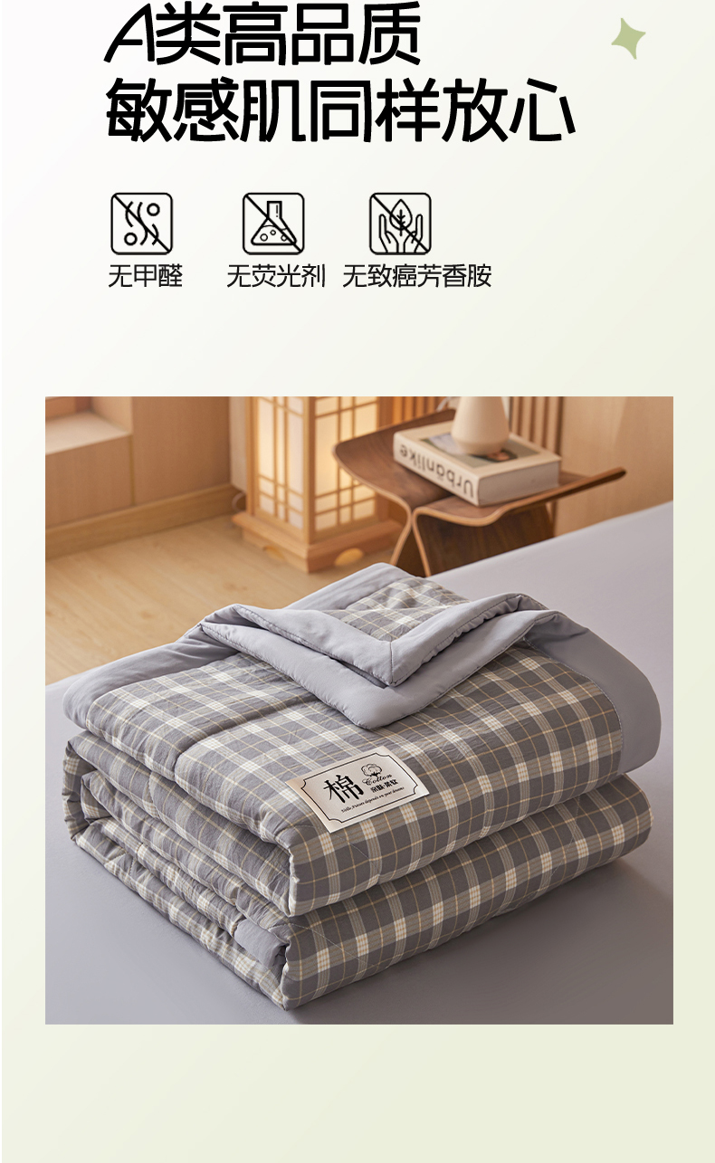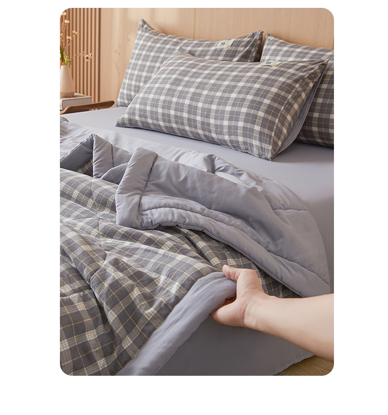 当前位置: 91家纺网 > 商品网购 > 被子 > 夏被 > 悦织语 2025新款A类色织水洗棉夏被新疆棉花被空调被四件套 棉花夏被-灰格