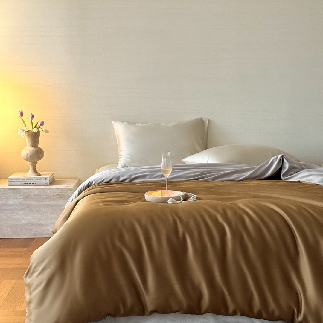 禾时 2025新款纯色双拼兰精天丝单品系列-单被套 被套单件 映霜蓝-霜华银