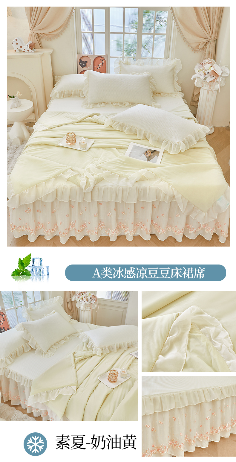 锦格2025年新款A类冰感凉豆豆床裙席夏被四件套 素夏-奶油黄