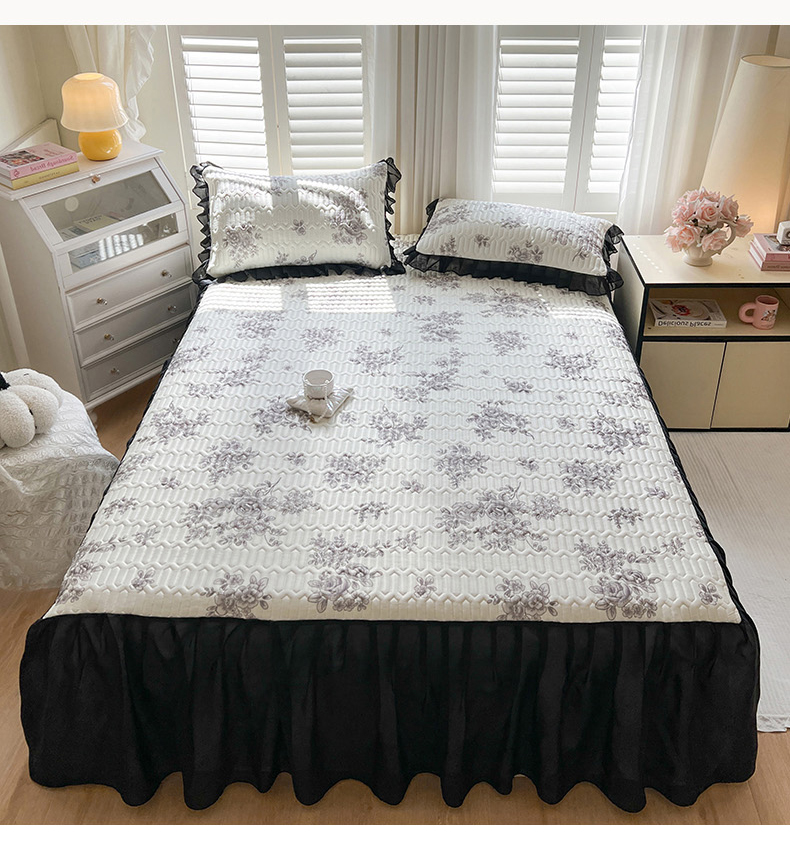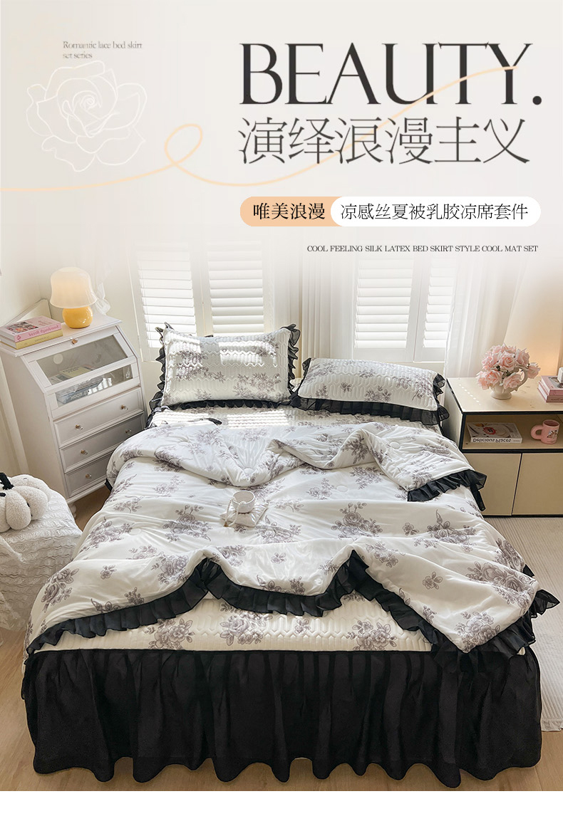 商品名称:慕澄2025新款小清新印花凉感丝花床裙款乳胶凉席 素描花