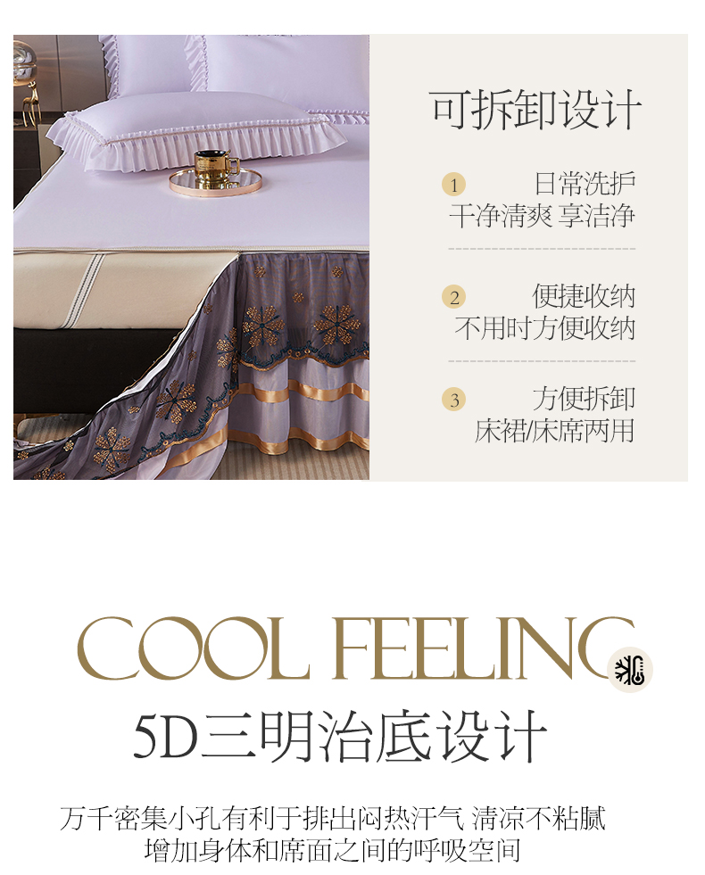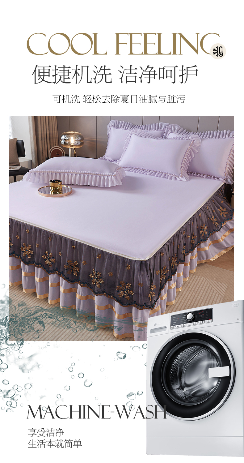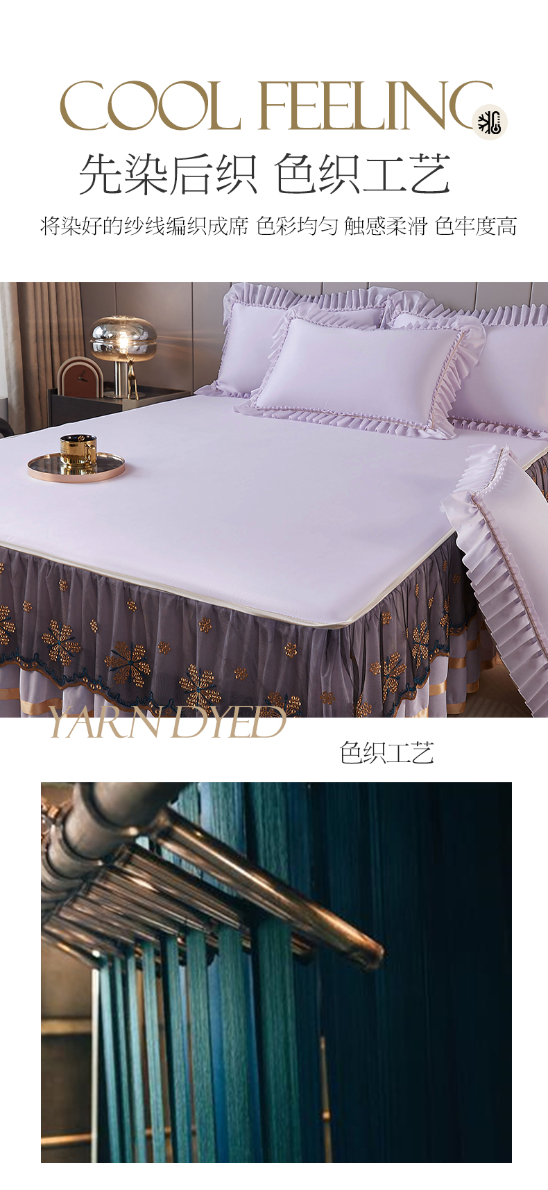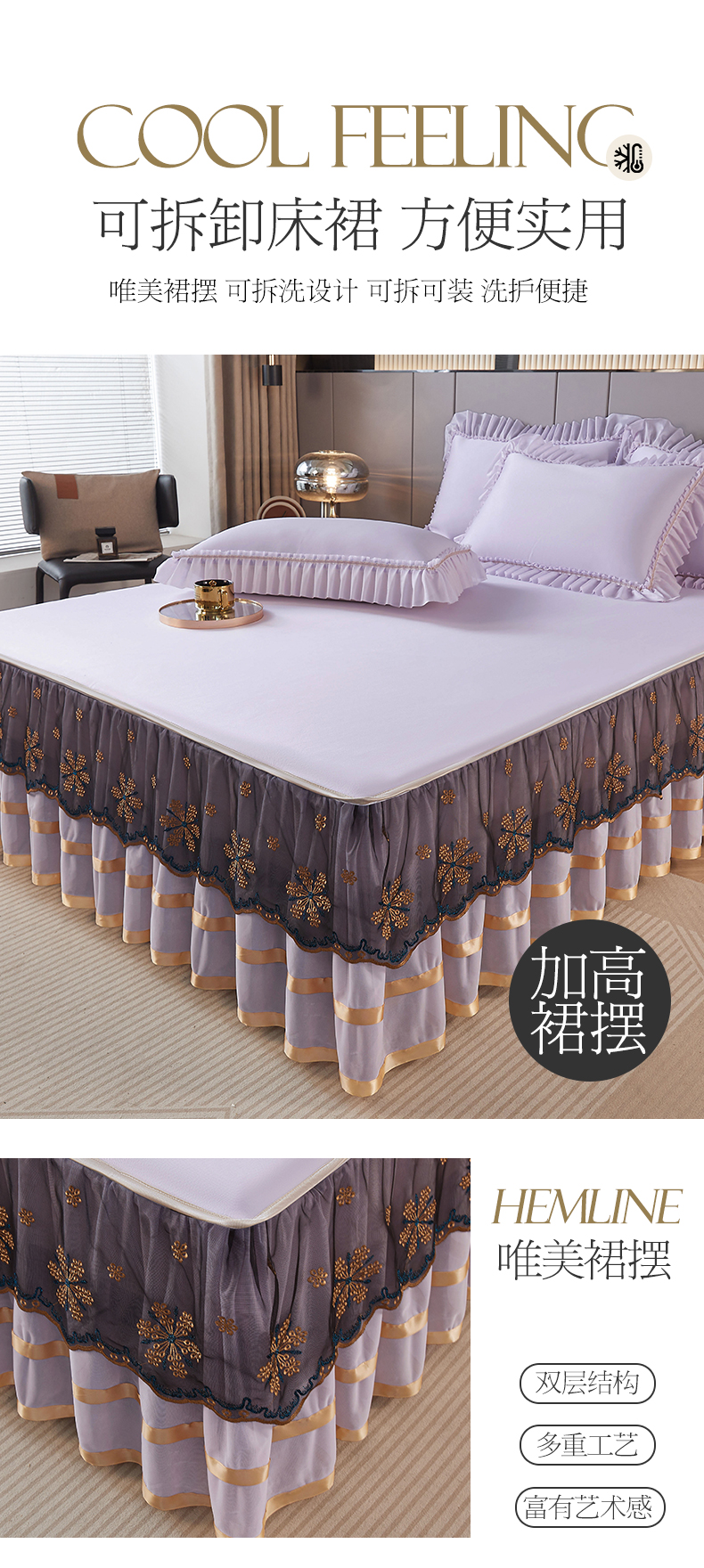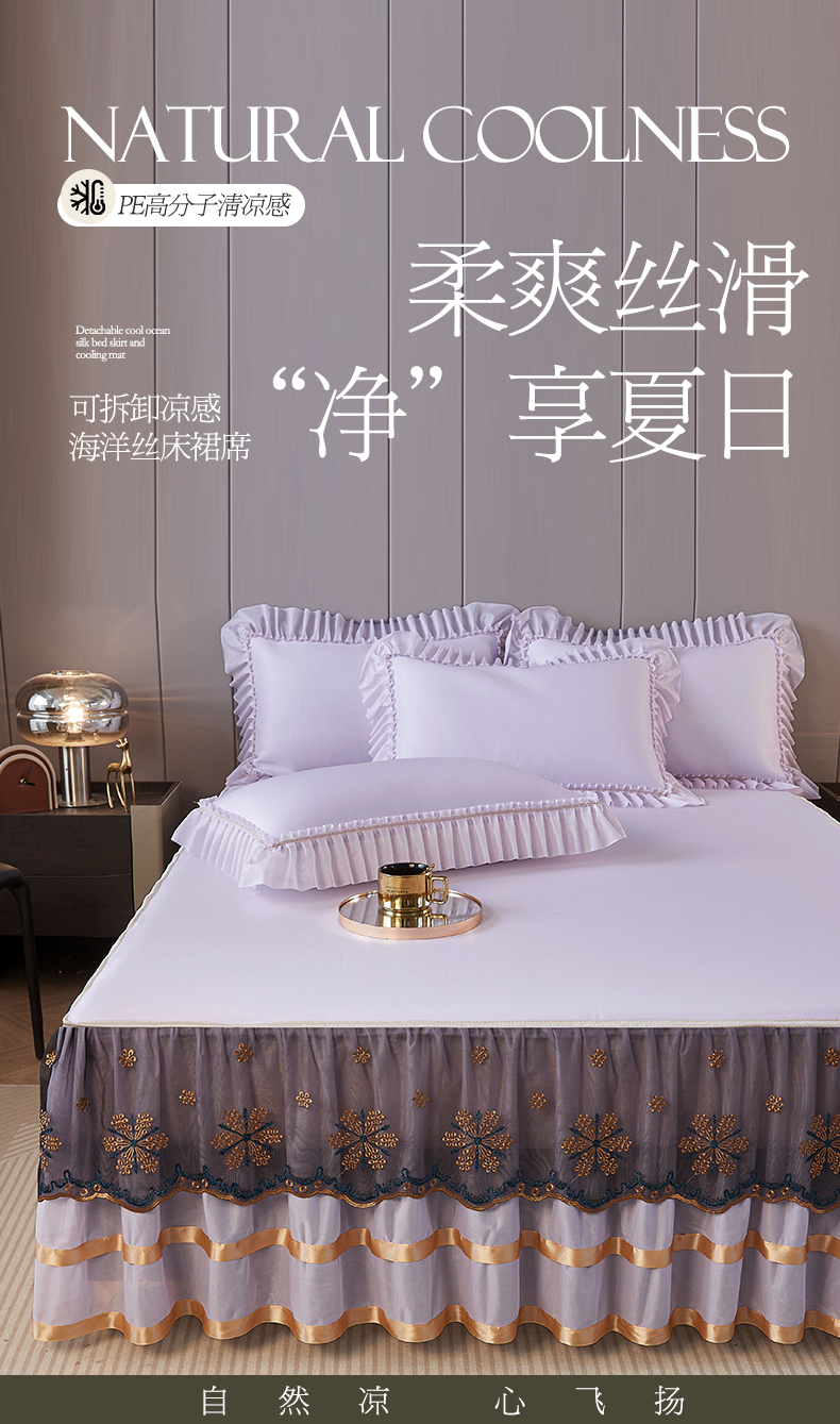 情恒家纺 2025新款纯色可拆卸PE海洋丝床裙席三件套 优雅紫