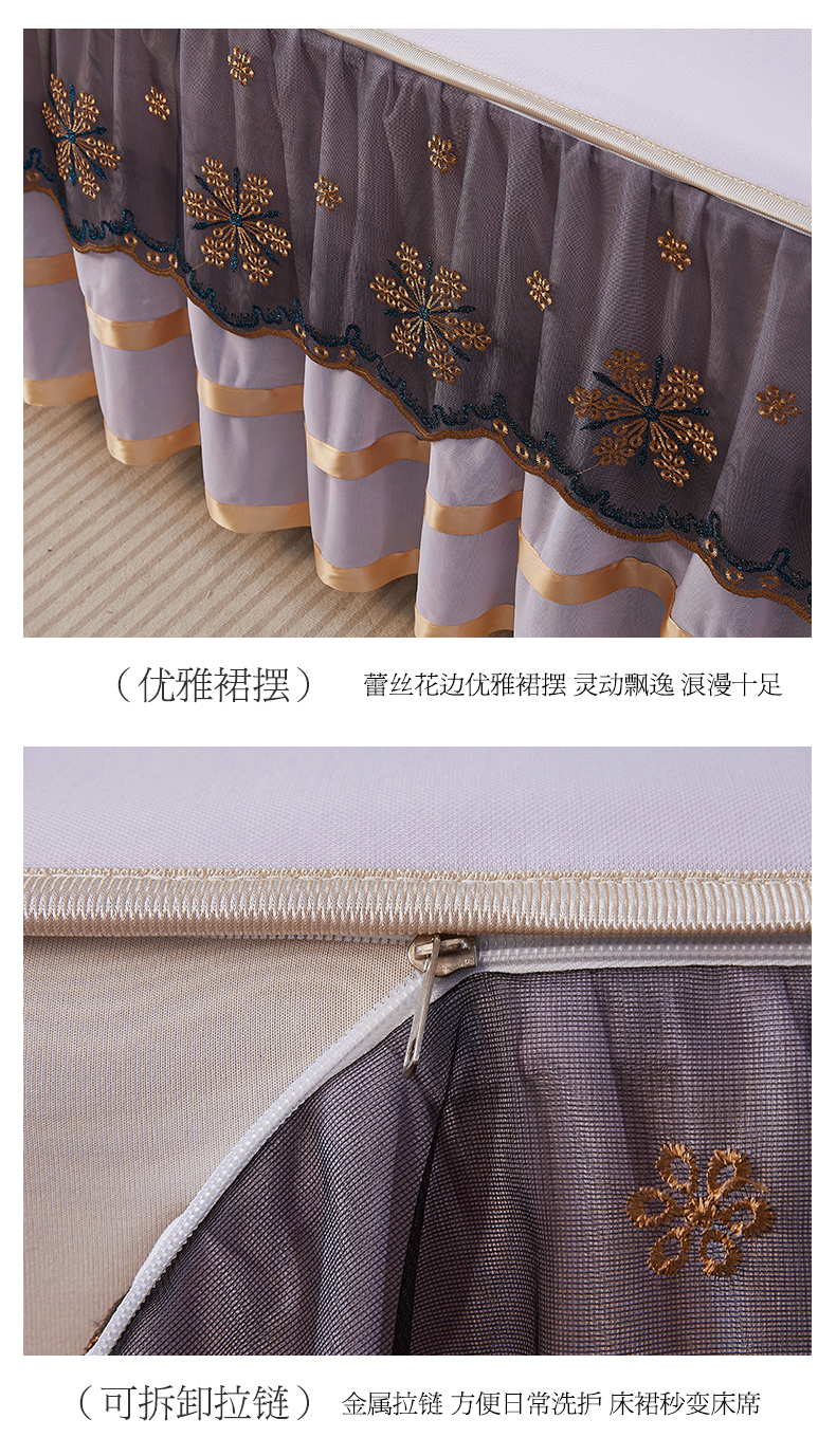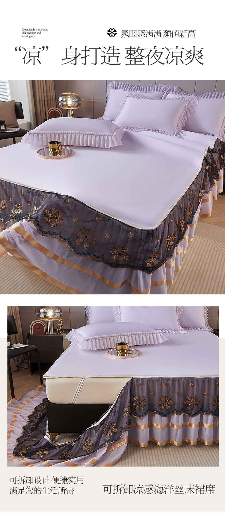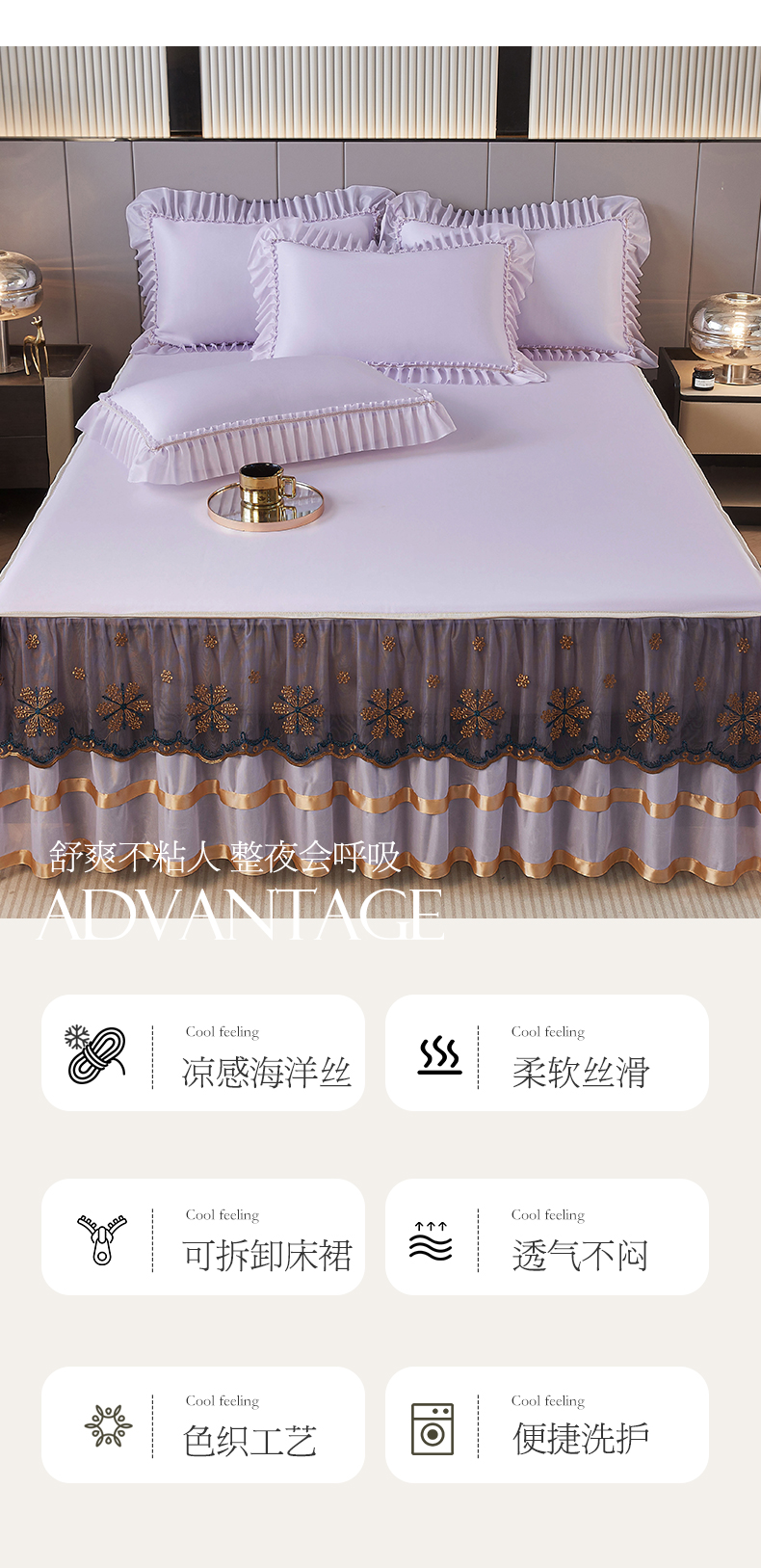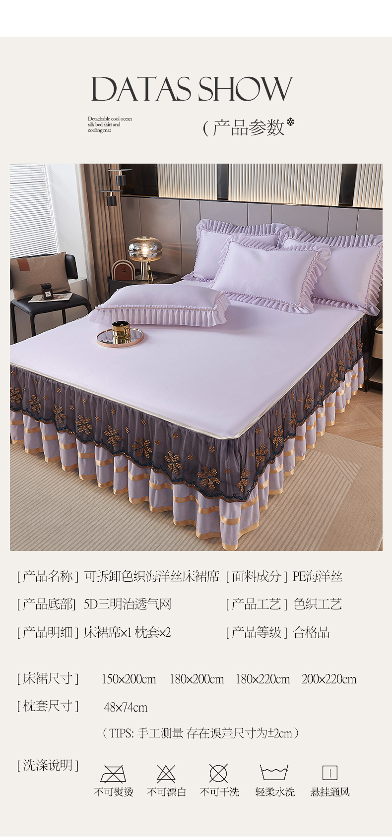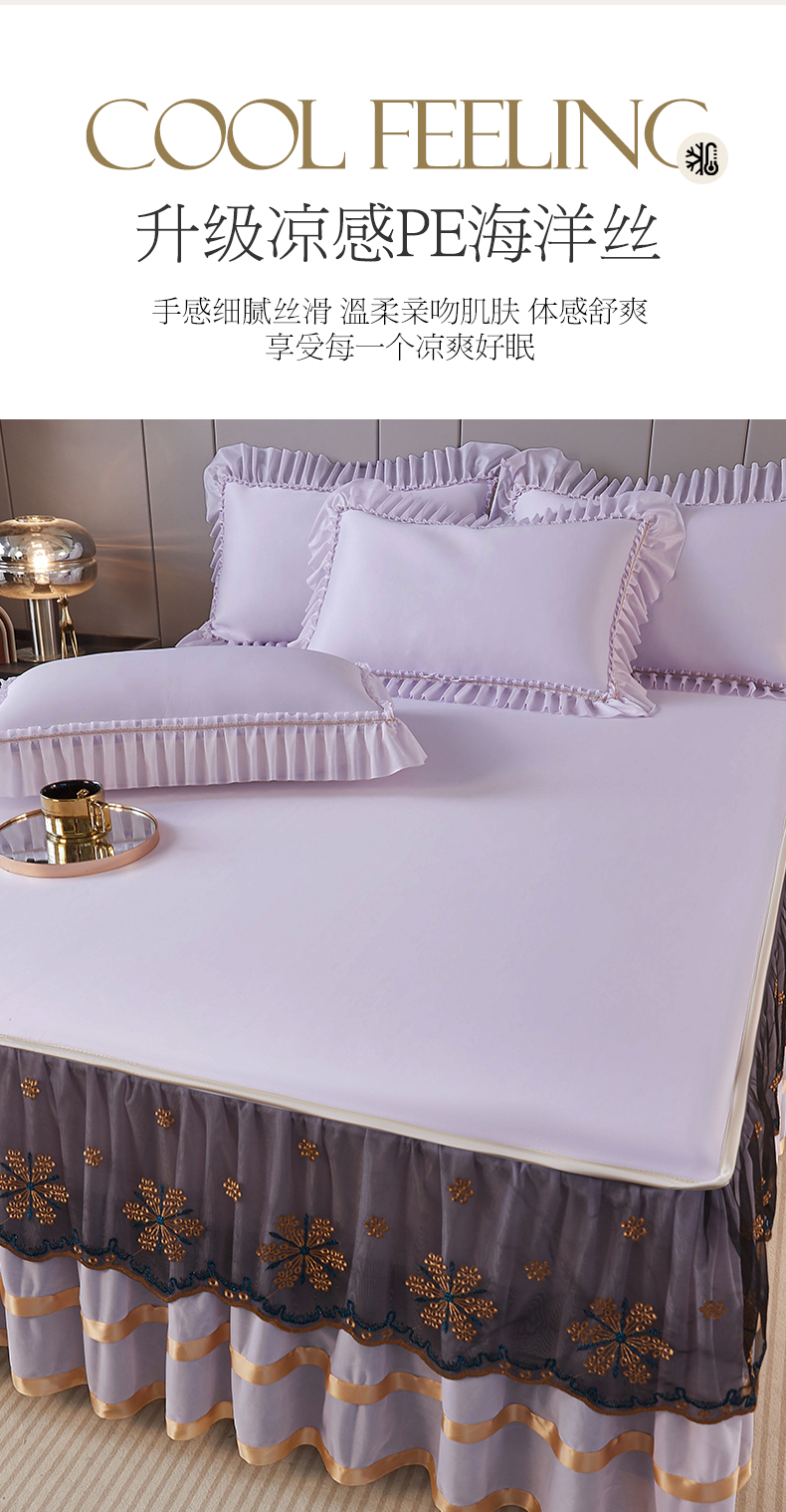 商品名称:情恒家纺 2025新款纯色可拆卸PE海洋丝床裙席三件套 优雅紫