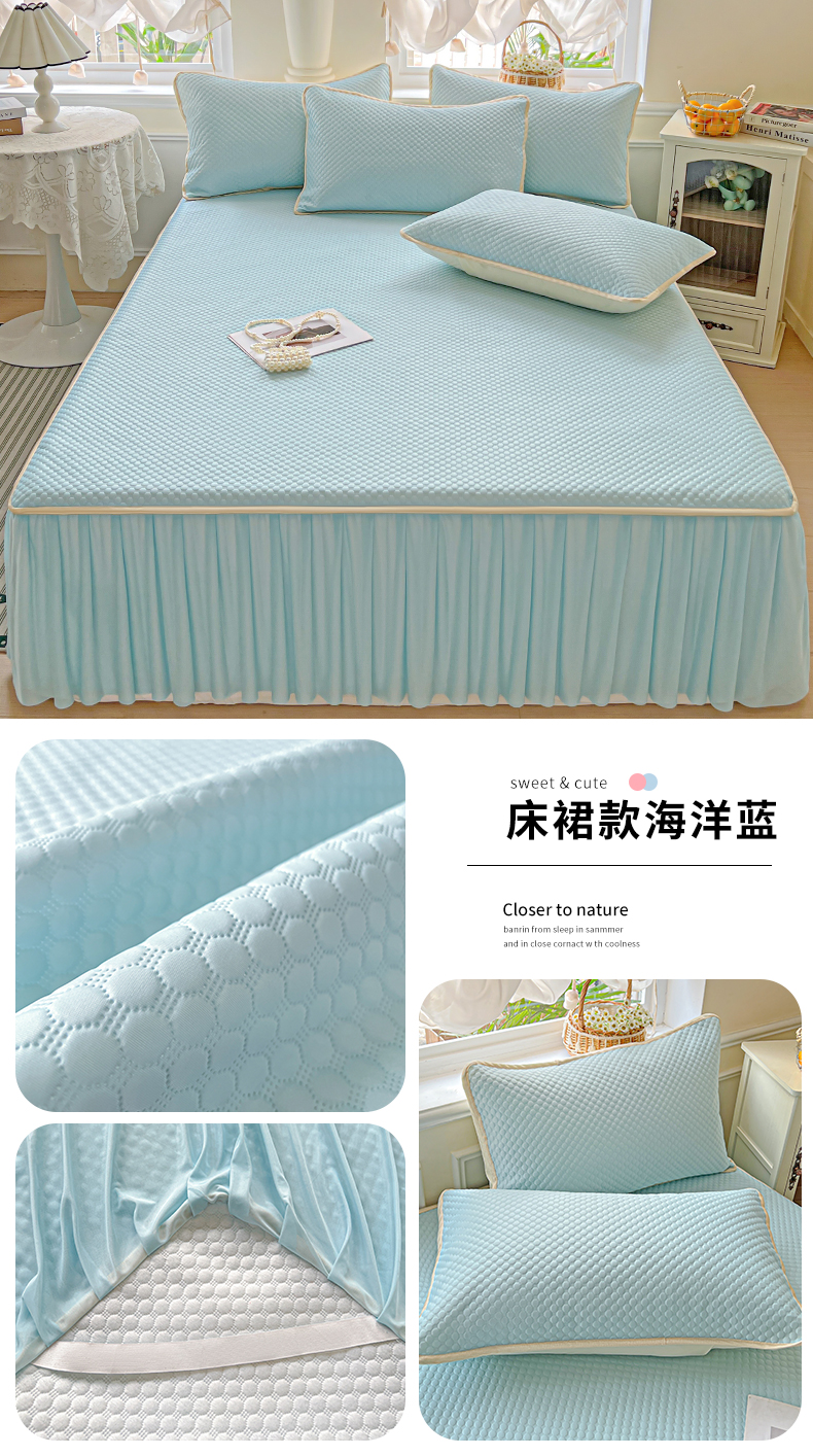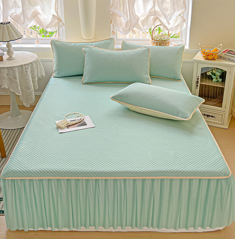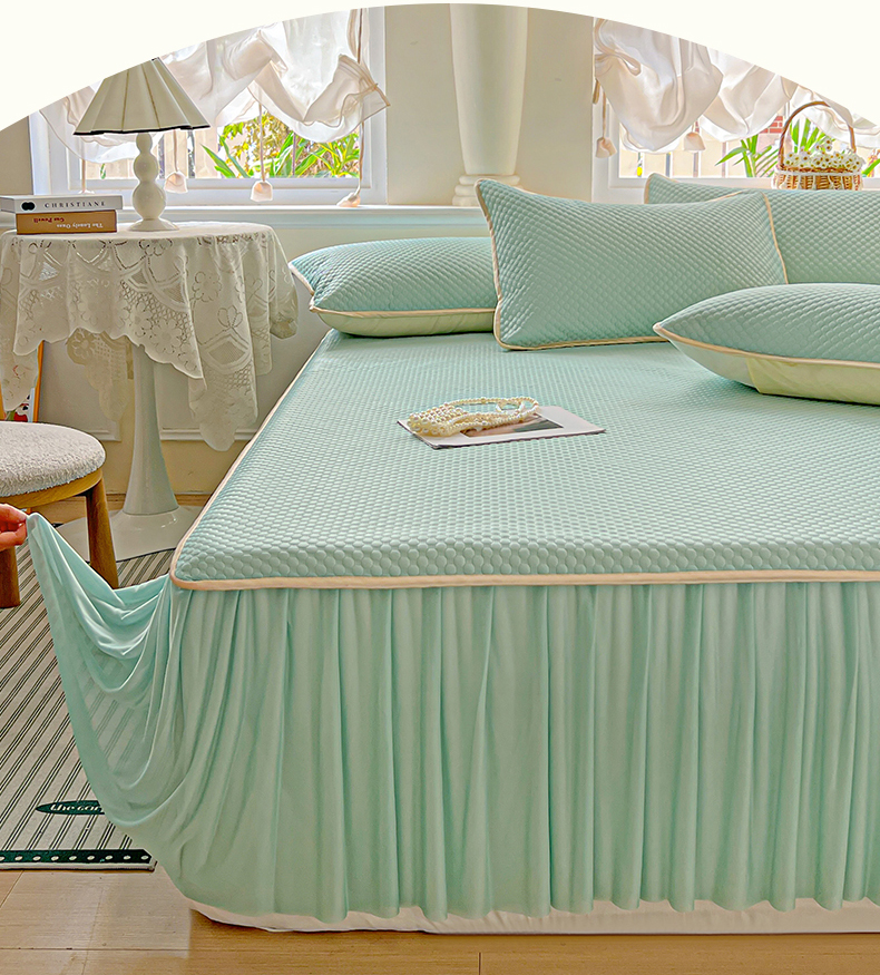 (总)格真 2023新款A类云锦棉大豆棉床裙,豆沙,满天星紫,米白,牛油果绿,樱花粉,芋泥灰