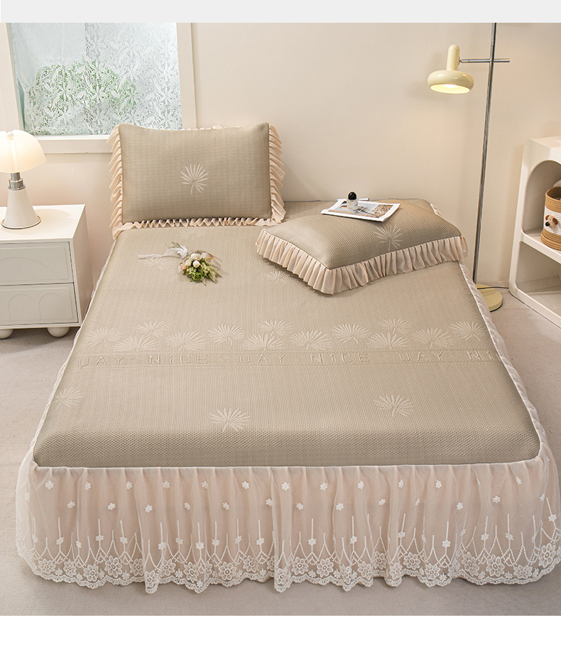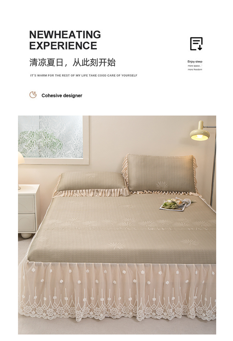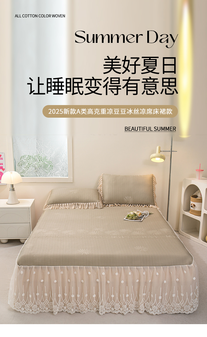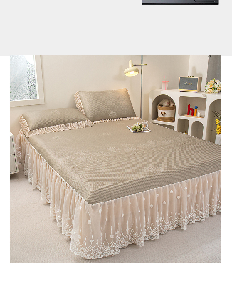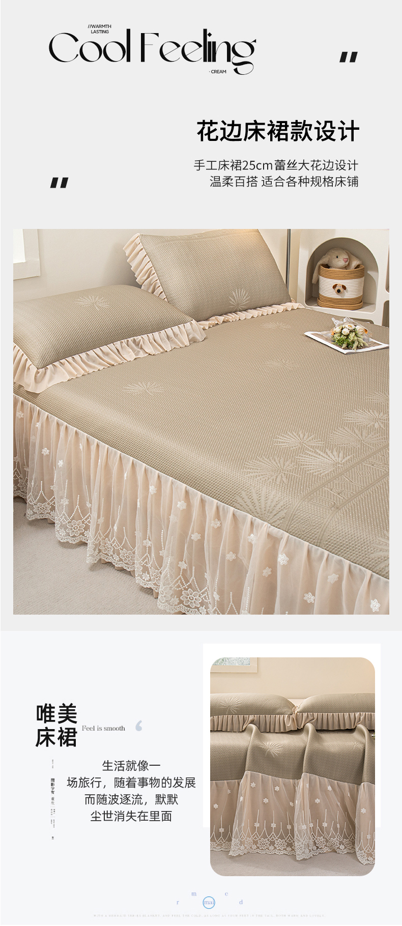 (总)美洲琳 2025新款650克凉豆豆凉席床裙三件套,湖蓝,浅灰,水绿,香槟,心粉