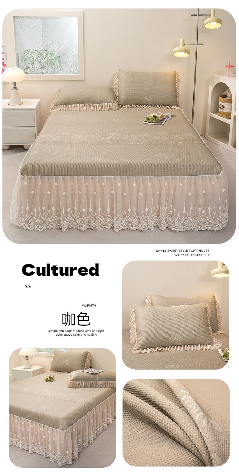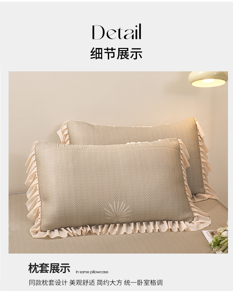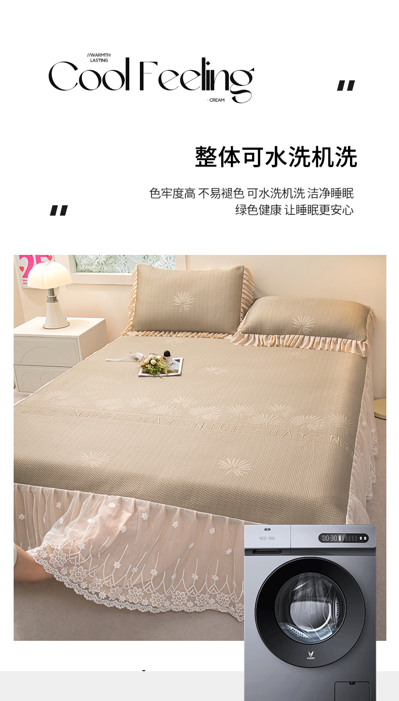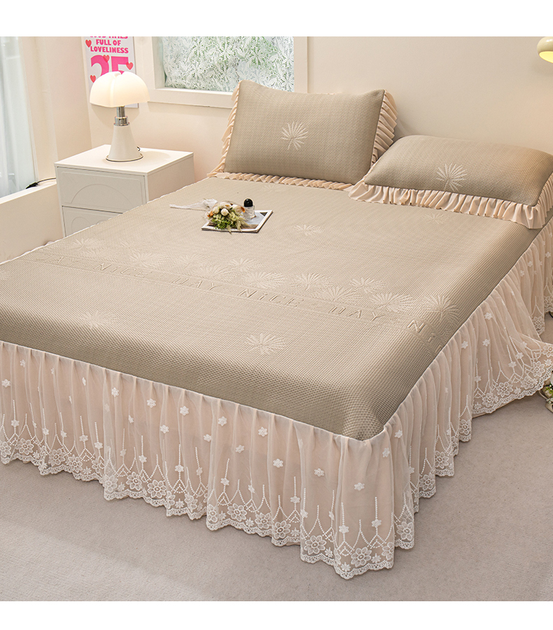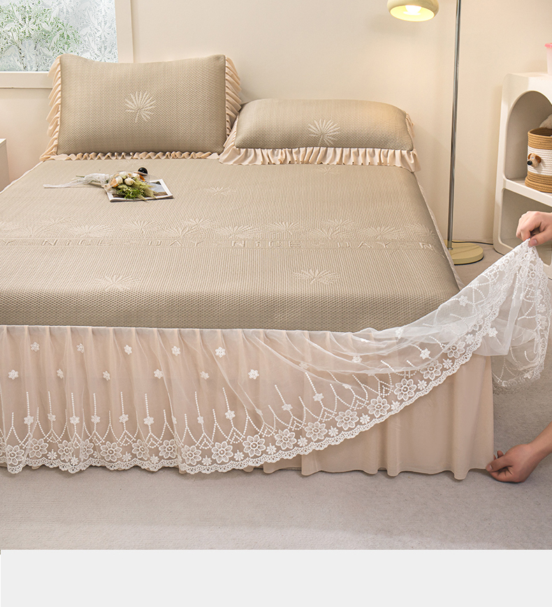(总)美洲琳 2025新款650克凉豆豆凉席床裙三件套,湖蓝,浅灰,水绿,香槟,心粉