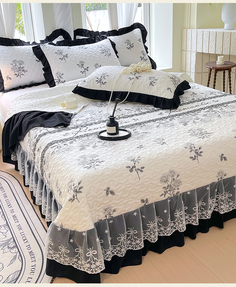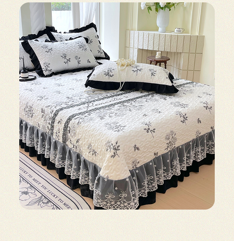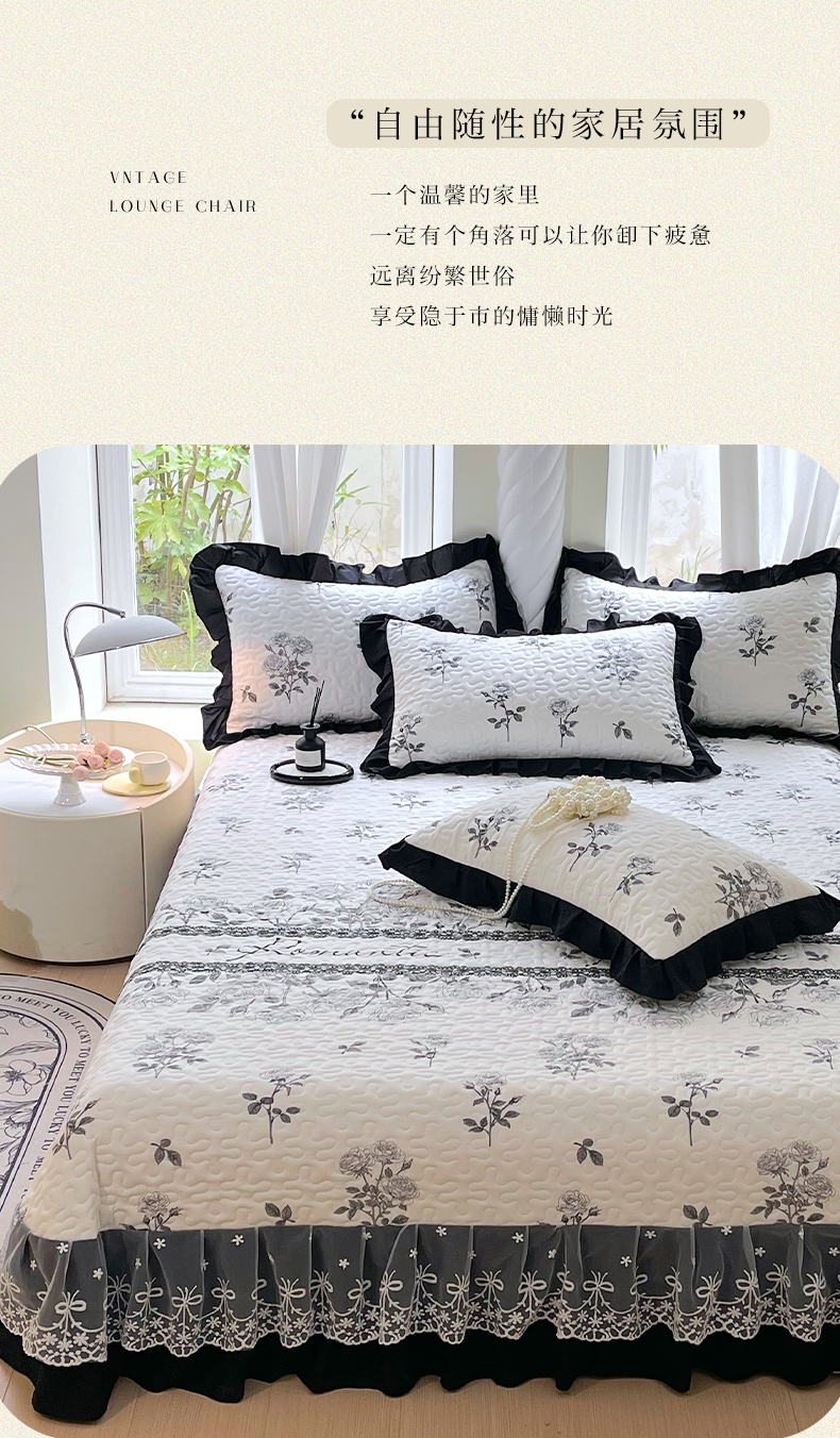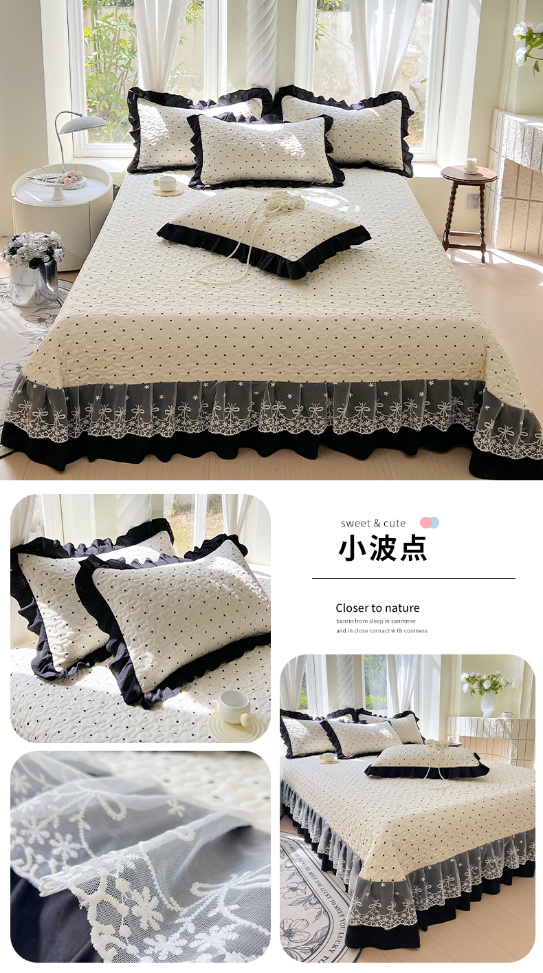 商品名称:(总)雨彤家纺 2025年新款赫本风云朵水洗棉夹棉双层花边床盖