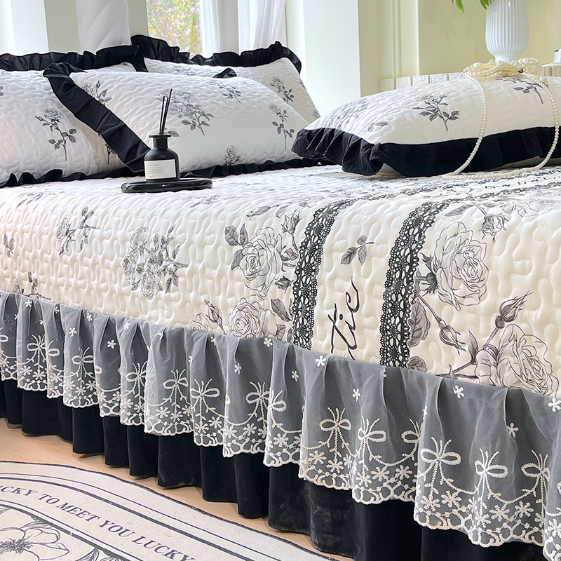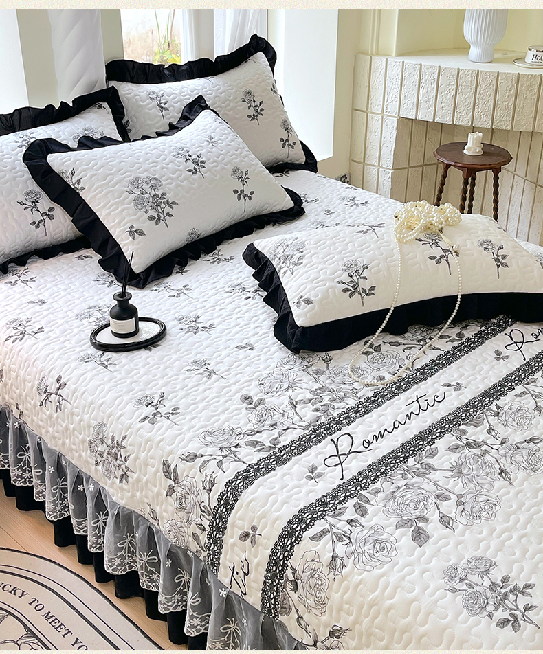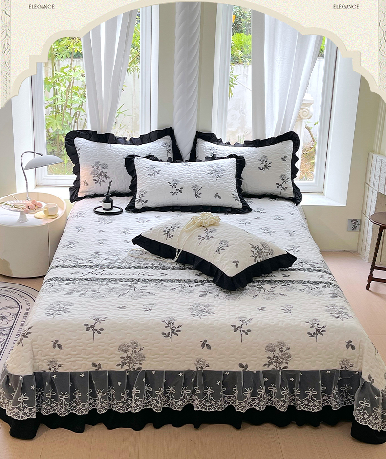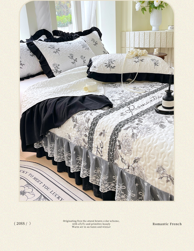 商品名称:(总)雨彤家纺 2025年新款赫本风云朵水洗棉夹棉双层花边床盖