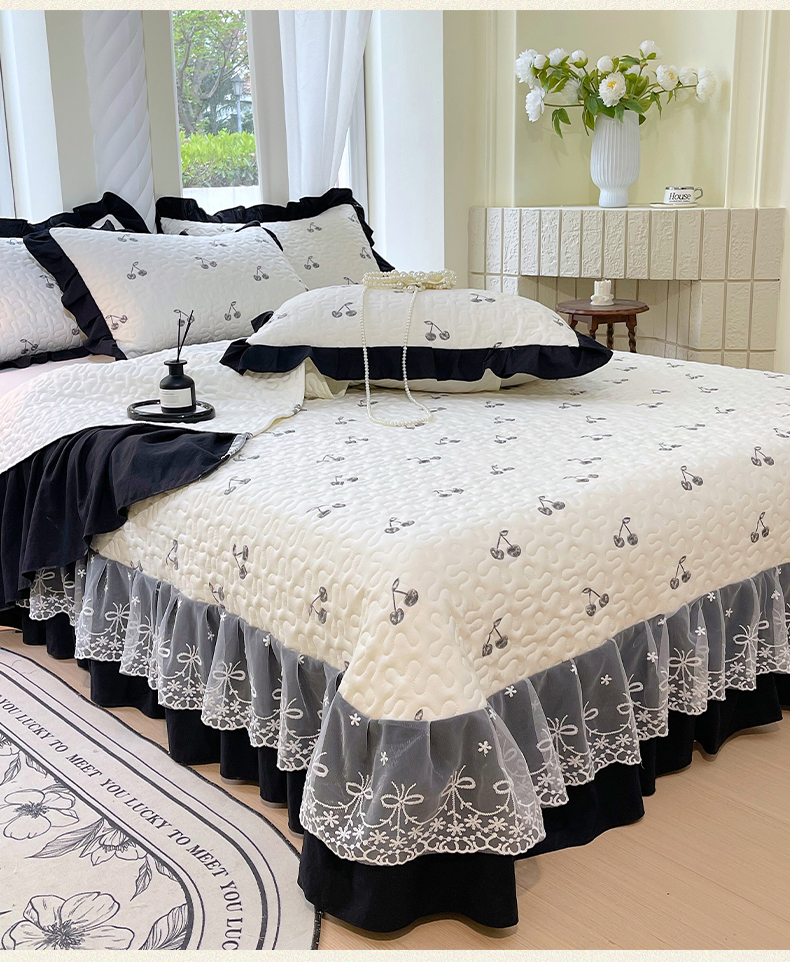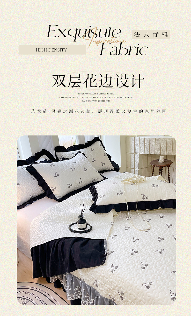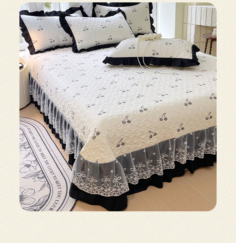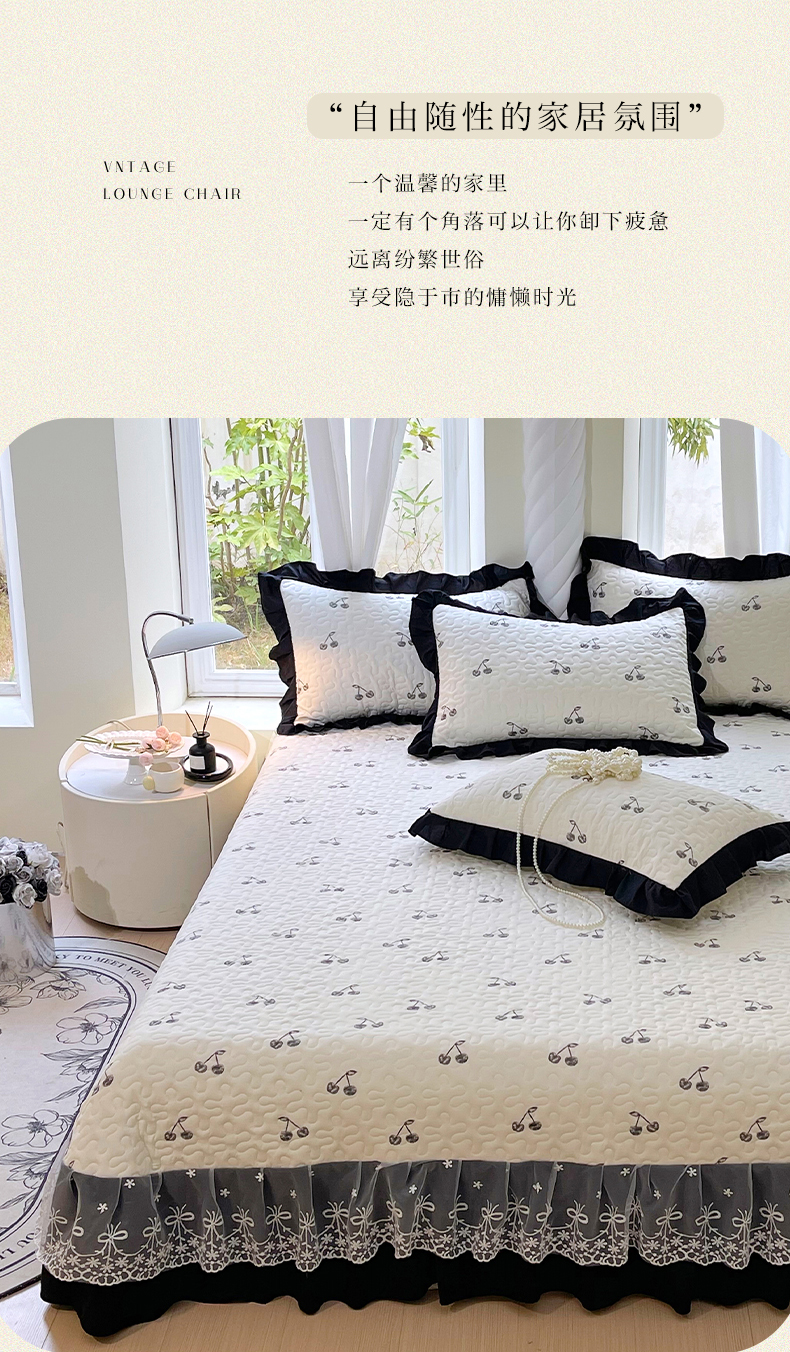 雨彤家纺 2025年新款赫本风云朵水洗棉夹棉双层花边床盖 樱桃-赫本风