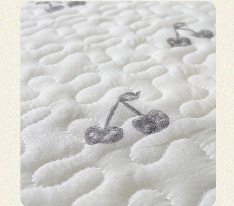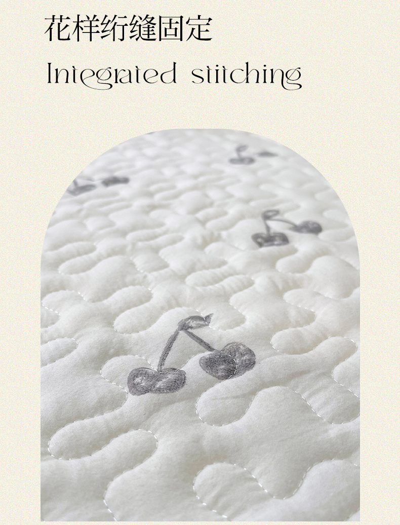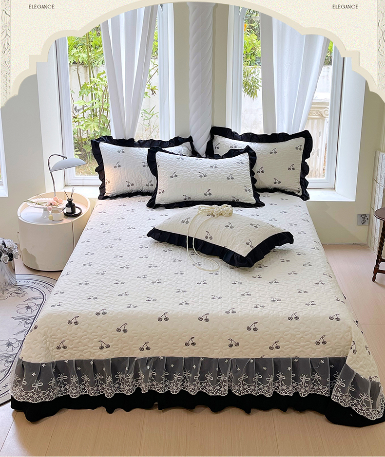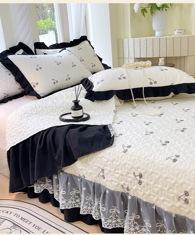 雨彤家纺 2025年新款赫本风云朵水洗棉夹棉双层花边床盖 樱桃-赫本风