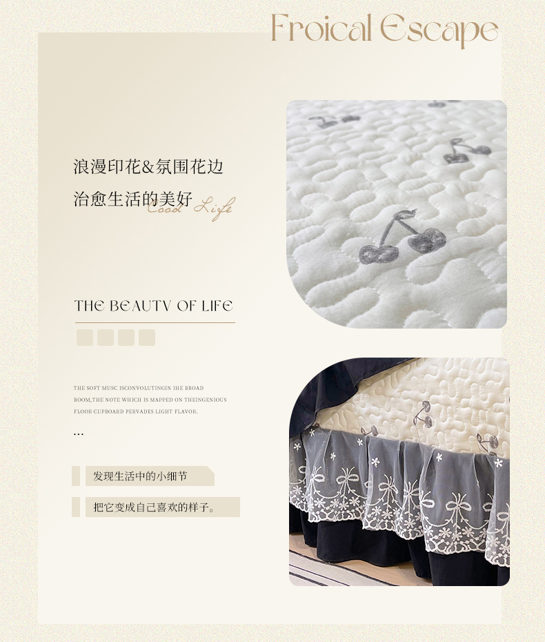 • 91家纺网 家纺一手货源 找家纺 雨彤家纺 2025年新款赫本风云朵水洗棉夹棉双层花边床盖 樱桃-赫本风
