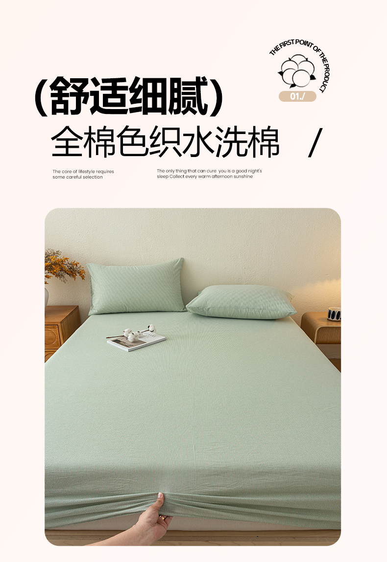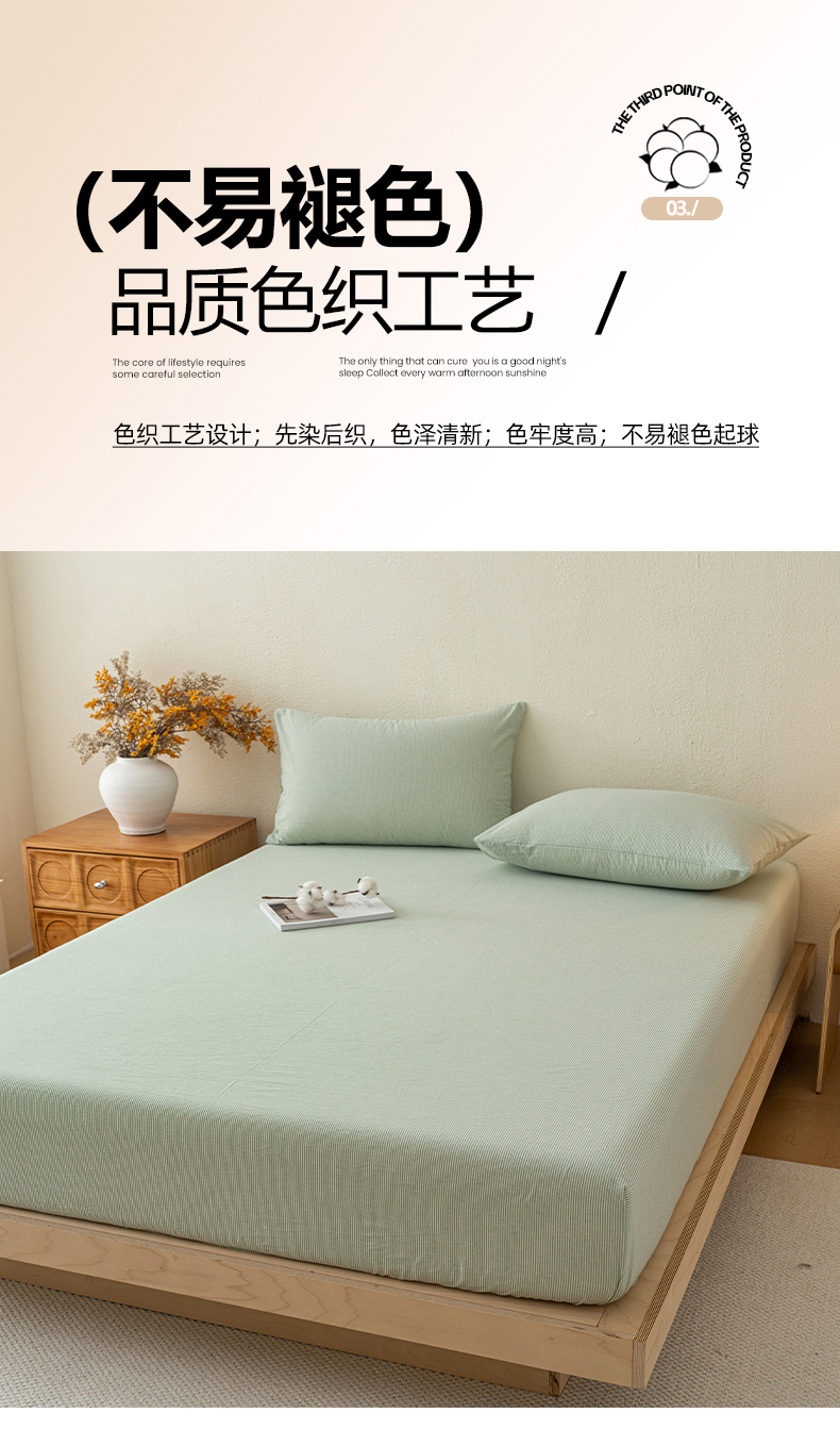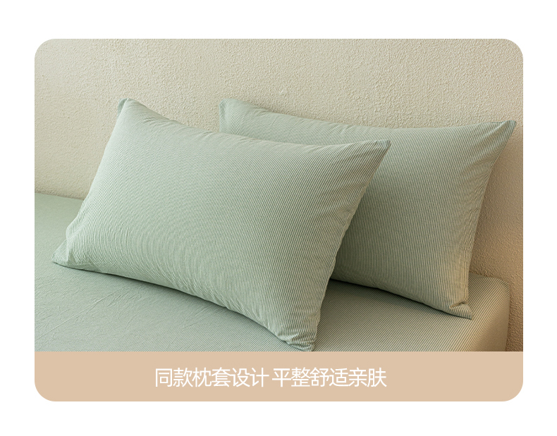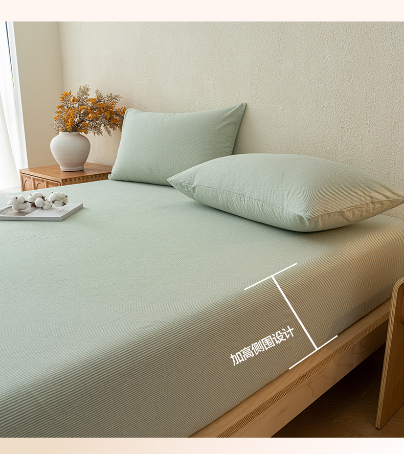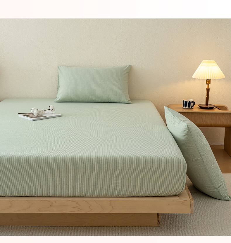 吉象家纺 2025新款全棉色织水洗棉床笠三件套 秘境绿条