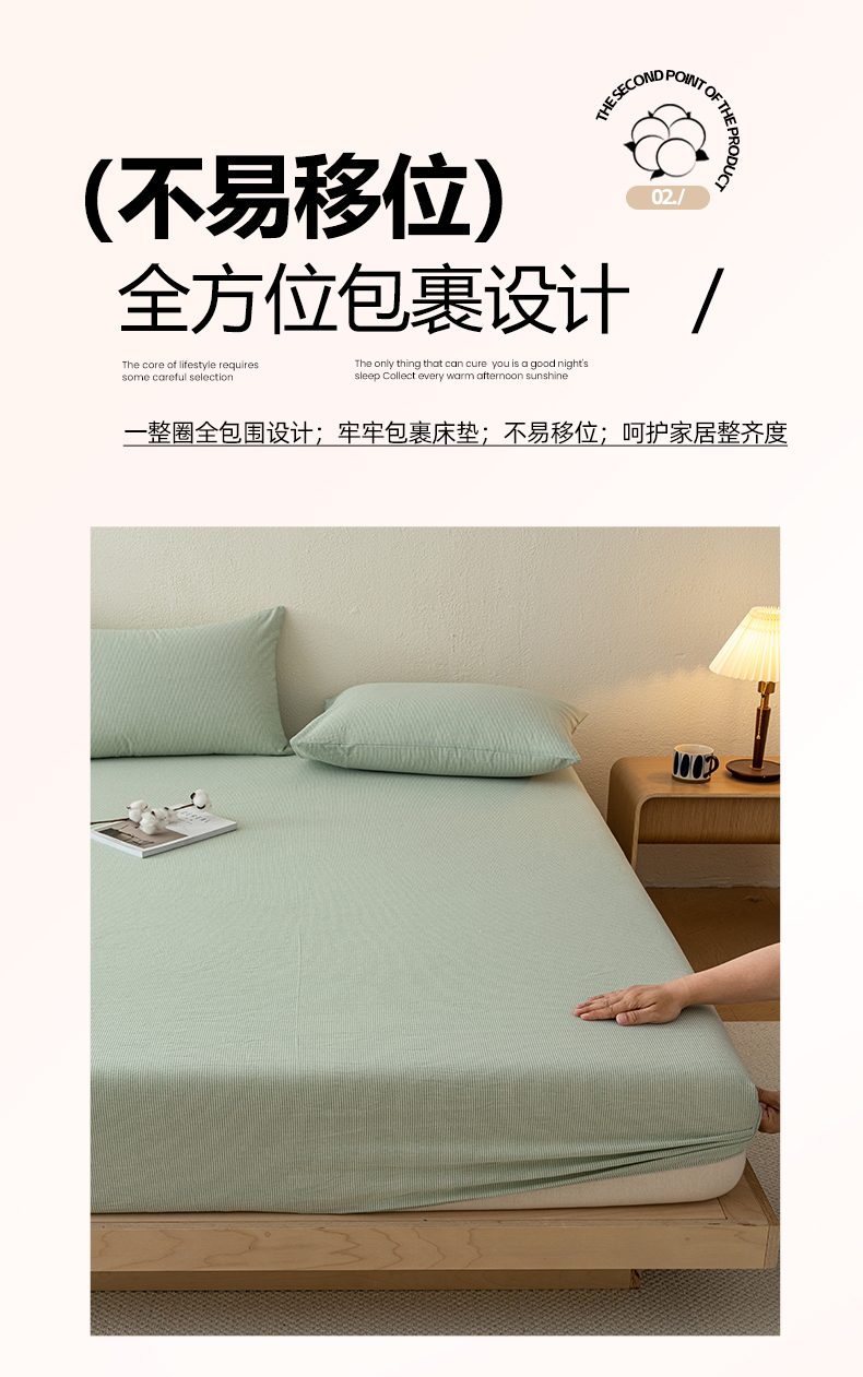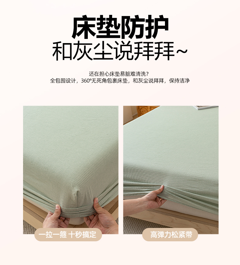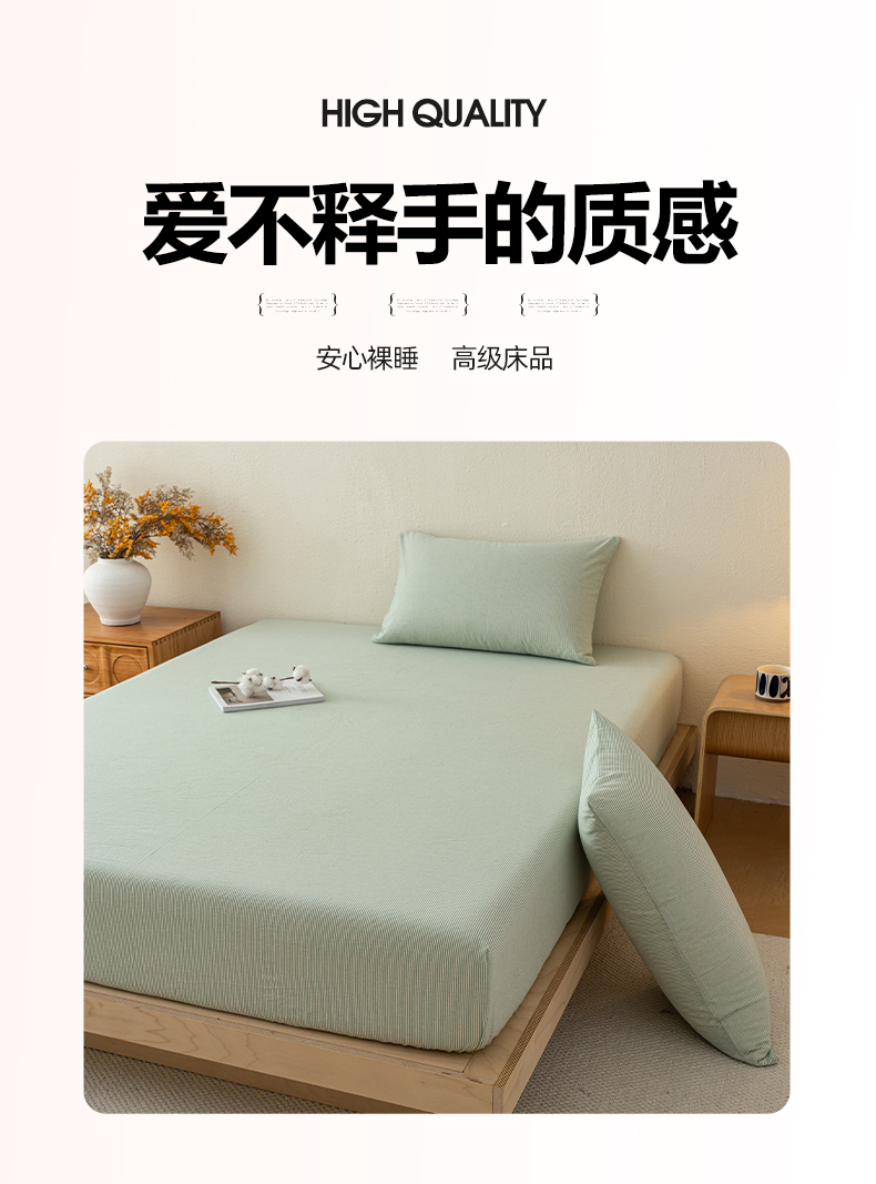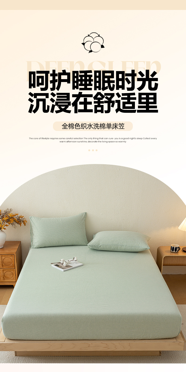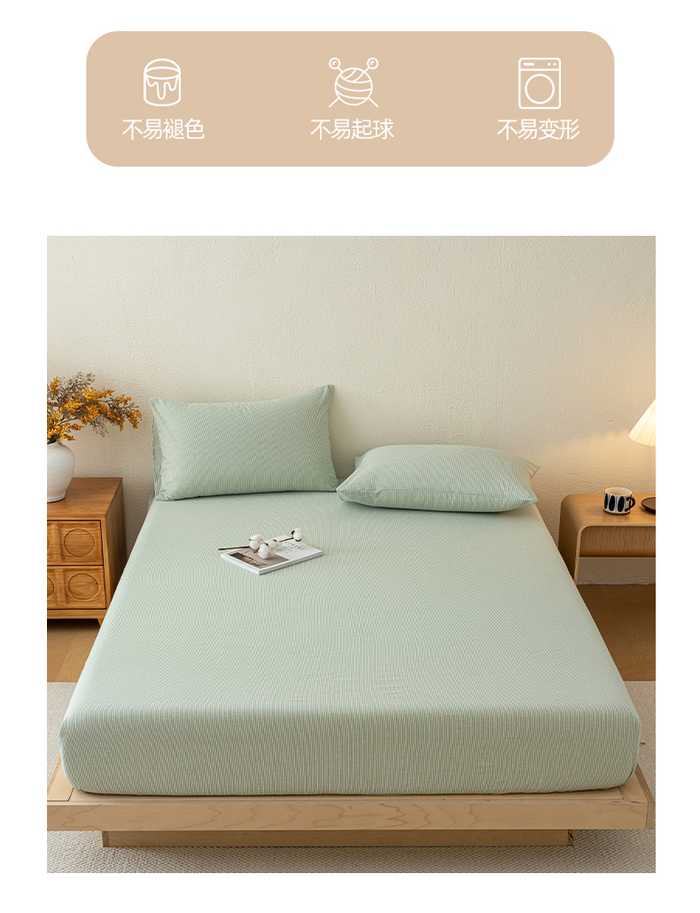 吉象家纺 2025新款全棉色织水洗棉床笠三件套 秘境绿条