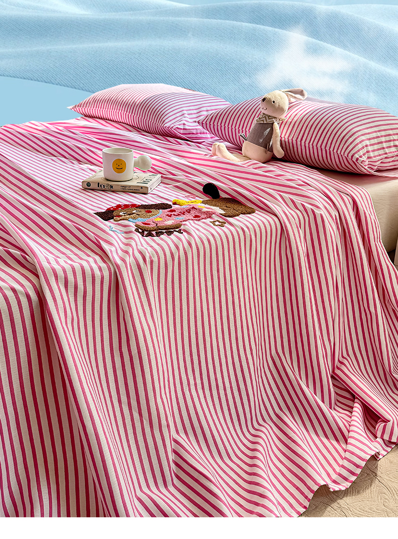 (总)居眠 2025新款A类母婴级卡通毛巾绣天丝床笠,假期小狗-天蓝,卡皮巴拉-水果绿,噗噗猫-肉粉,小树苗-奶昔白,小熊-姜黄