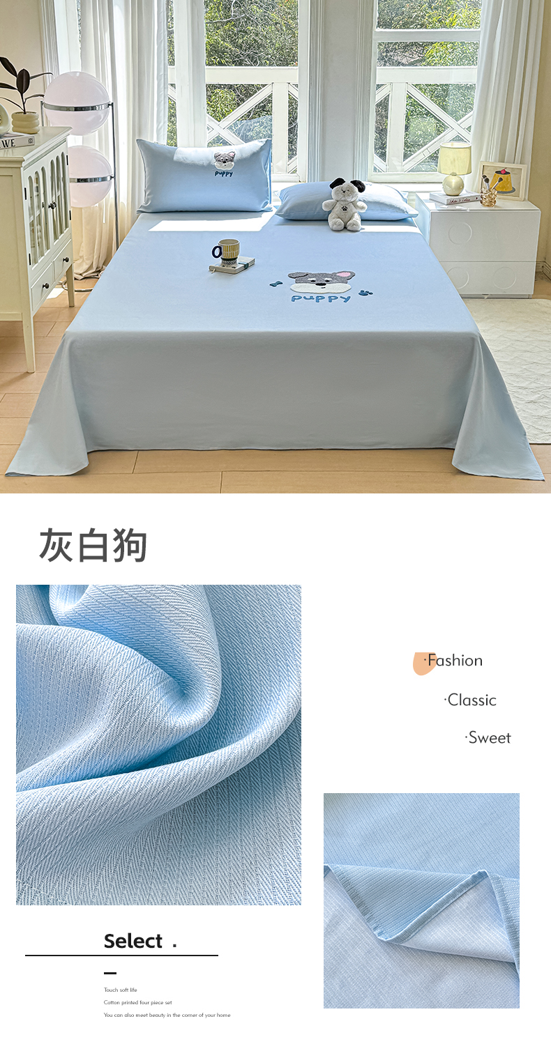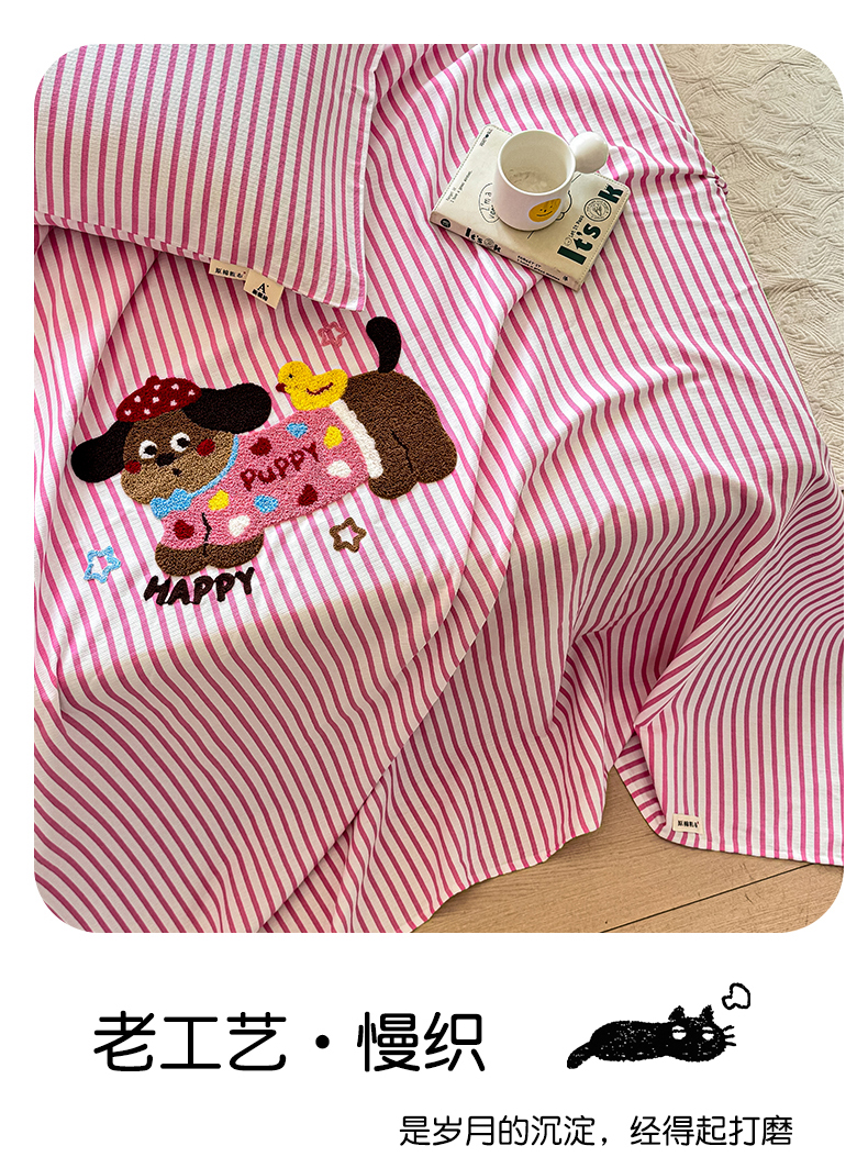 (总)居眠 2025新款全棉纯棉老粗布毛巾绣床单凉席席子,灰白狗,开心小狗,开心小猫,圣诞树,温柔海獭,开心饼干
