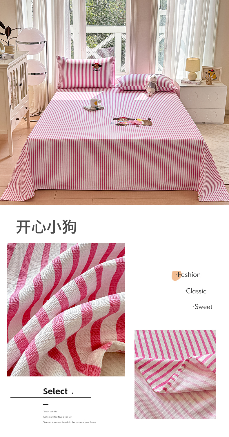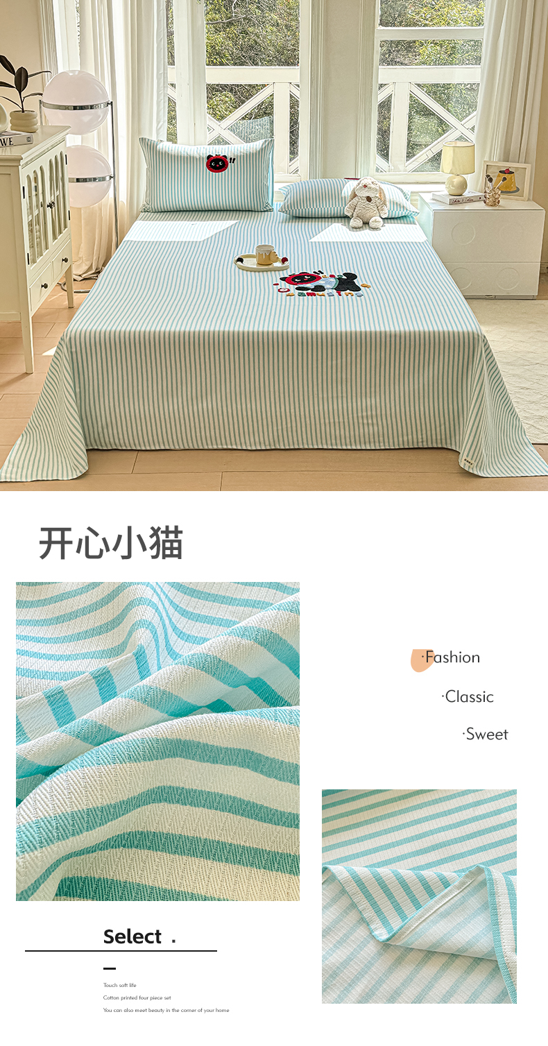 (总)居眠 2025新款全棉纯棉老粗布印花席子凉席床单床笠,Hello Kitty,哈巴狗,黑色格纹,红格纹,灰色线条,蓝纹条,青色花,温妮莎,组合图仅供展示