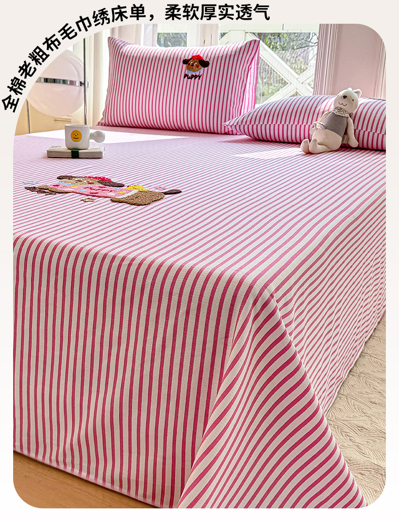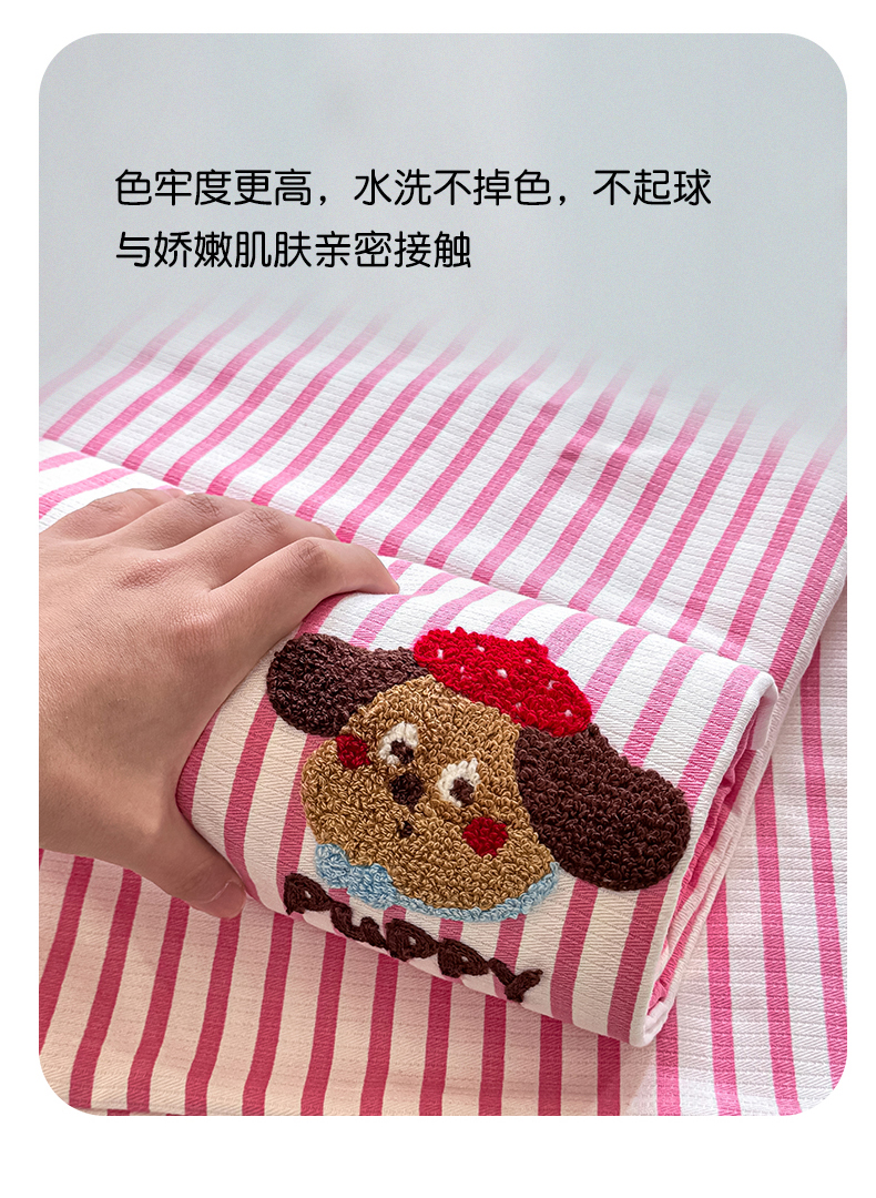 (总)居眠 2025新款全棉纯棉云感皱皱纱毛巾绣床单,白胡子狗狗,波点甜甜圈,大象先生,蝴蝶猫咪,腊肠樱桃,三只小可爱,圣诞树,兔兔小姐,外星小鸟,小象汽车,组合图仅做展示