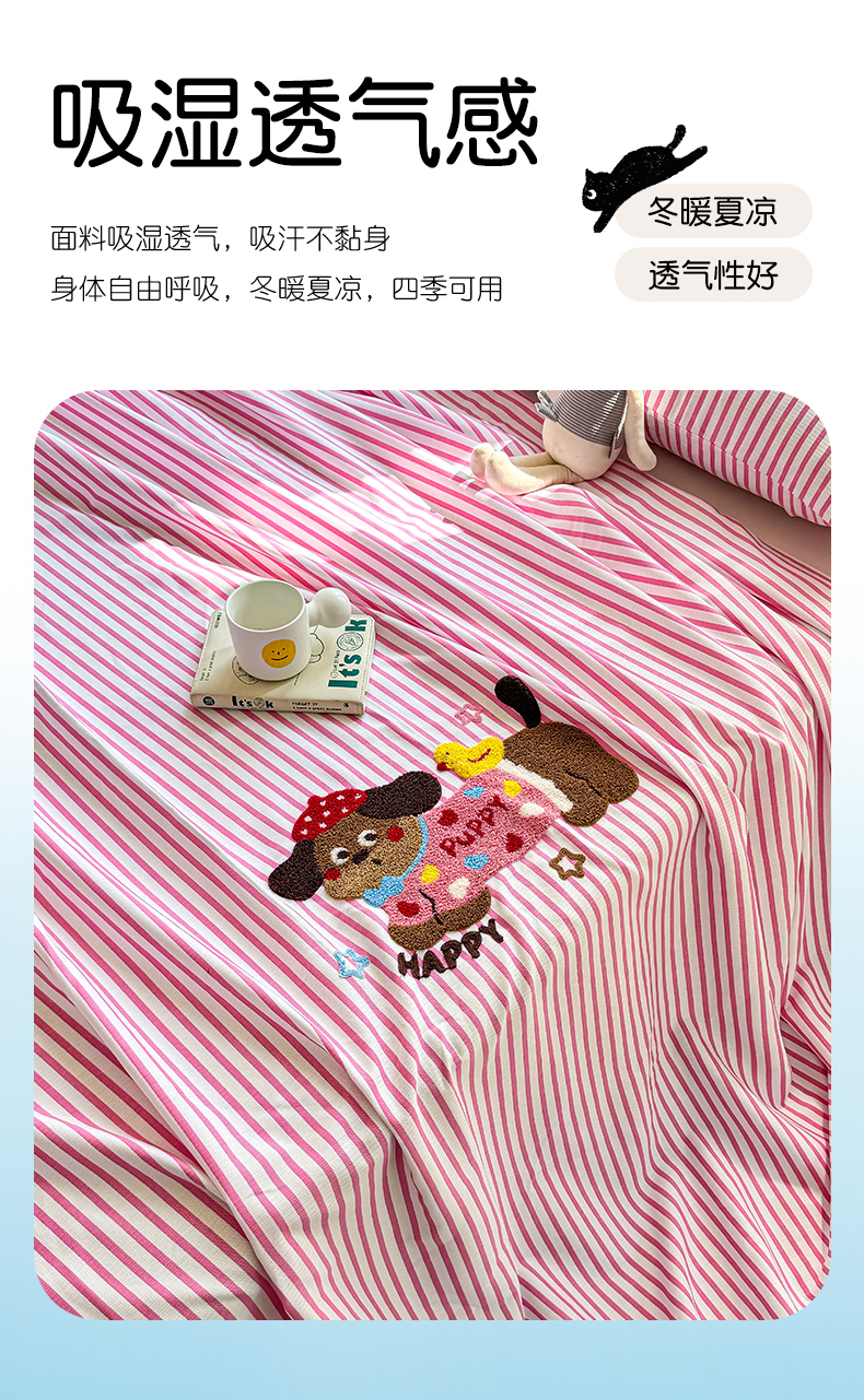 (总)居眠 2025新款全棉纯棉老粗布毛巾绣床笠凉席席子,开心饼干,开心小狗,灰白狗,开心小猫,圣诞树,温柔海獭,组合图仅做展示