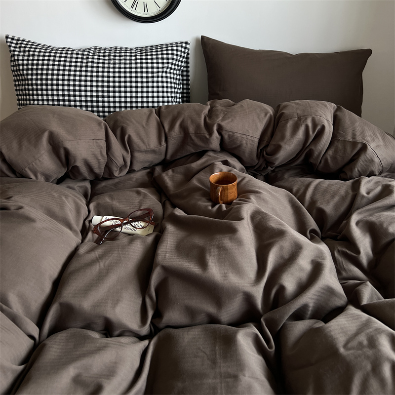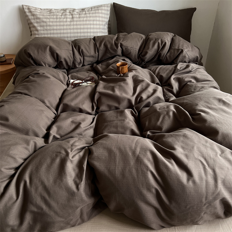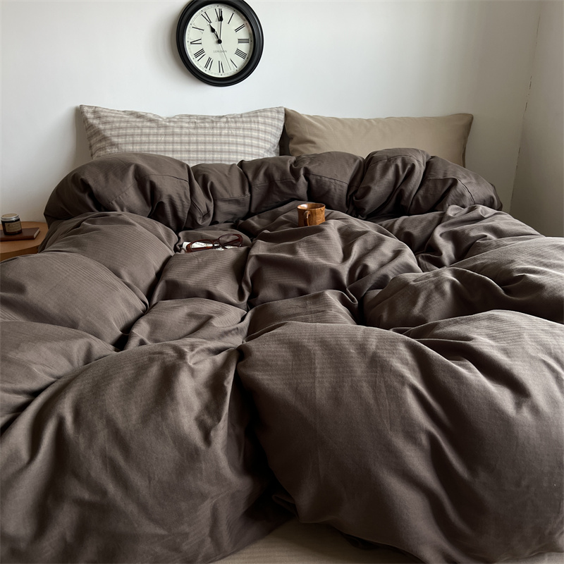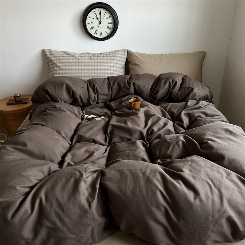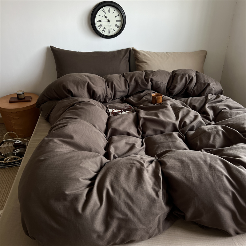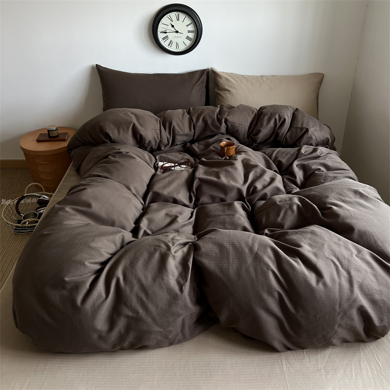 (总)蜜宿 2024新款美拉德大眼睛全棉水洗棉四件套,大眼睛-咖巧克力棕