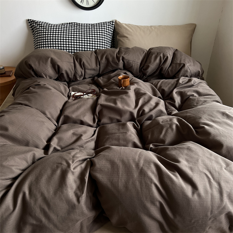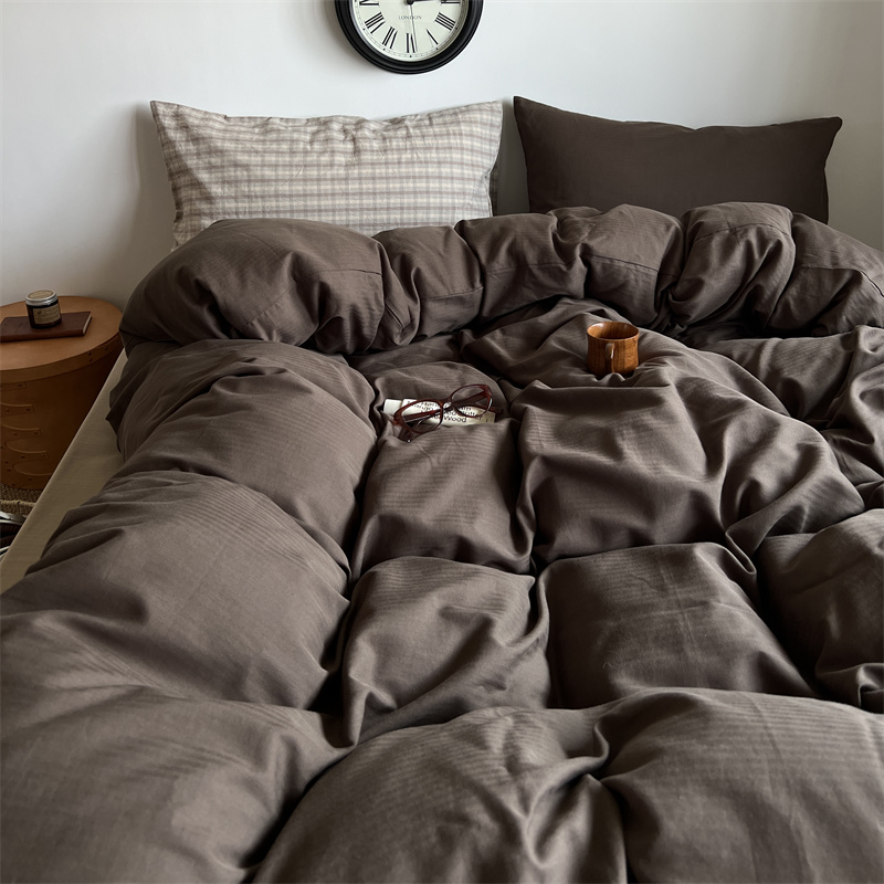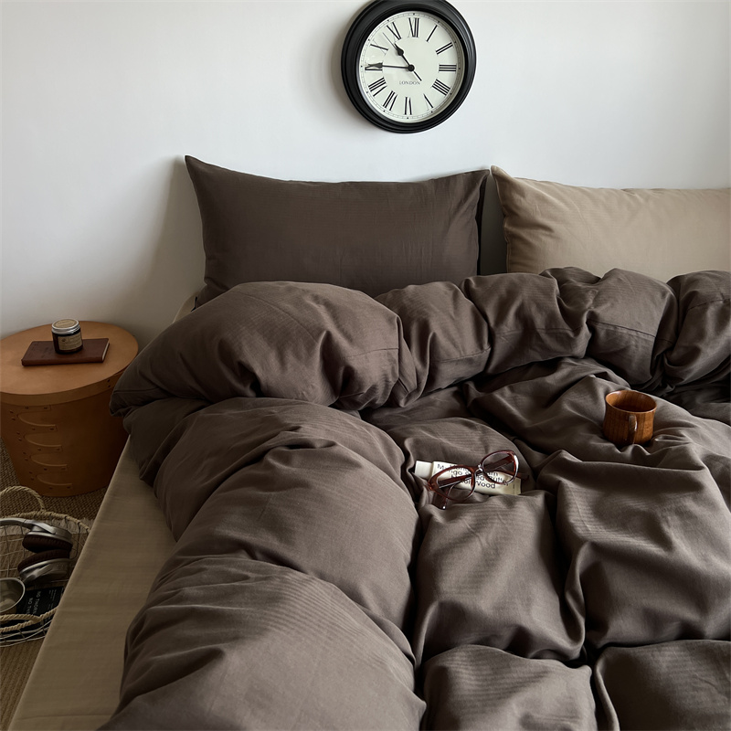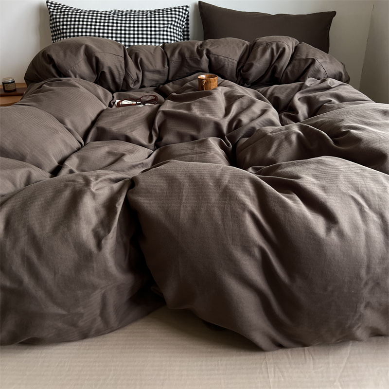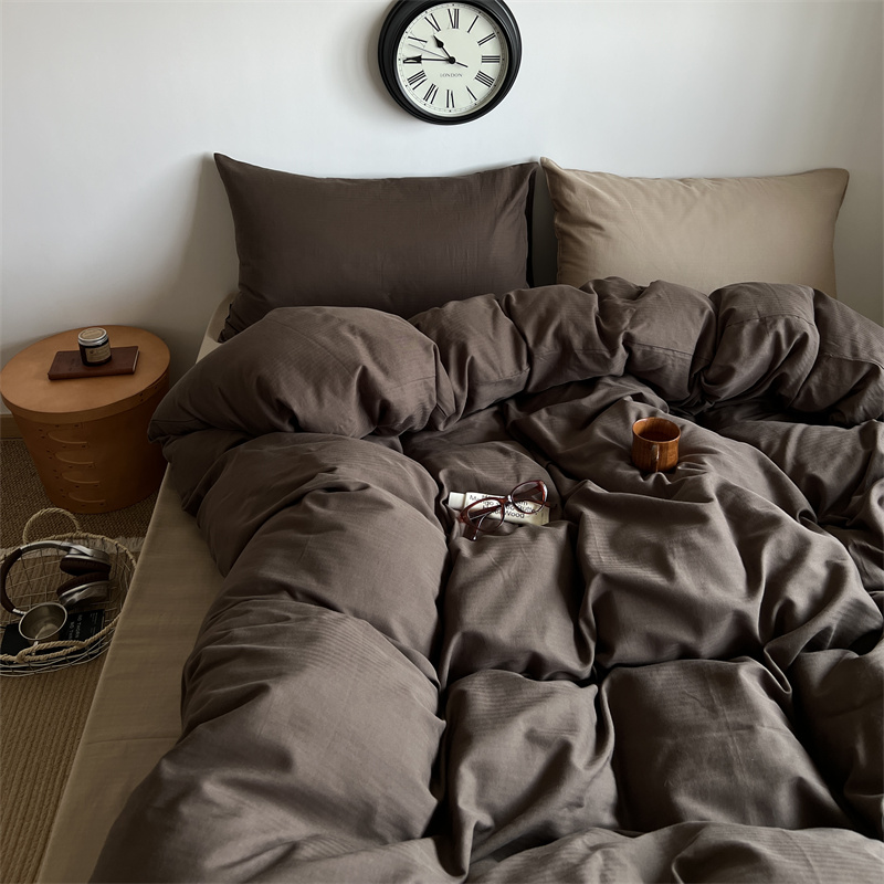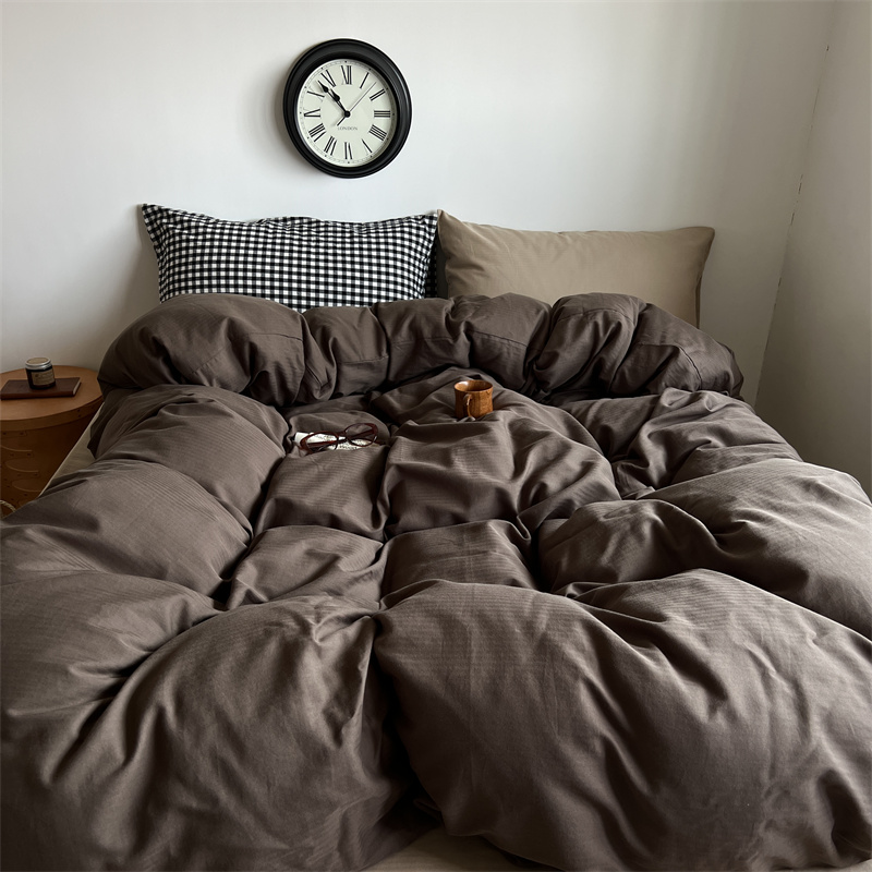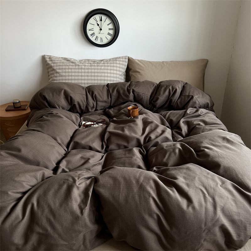(总)蜜宿 2024新款美拉德大眼睛全棉水洗棉四件套,大眼睛-咖巧克力棕