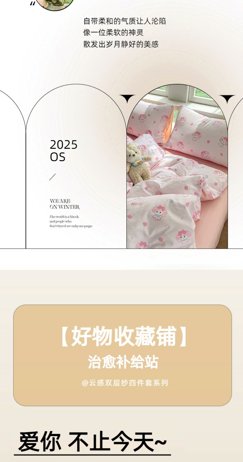 当前位置: 91家纺网 > 商品网购 > 床品套件 > 四件套 > 双层纱四件套 > 温眠家纺 2025新款云感针织双层纱四件套 莓乐蒂
