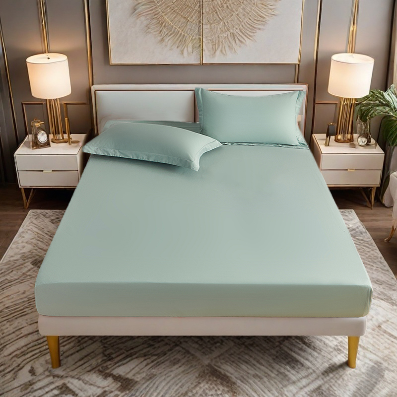 2025新款纯色全棉床笠喷气全棉床罩三件套-优雅系列 优雅-松石绿