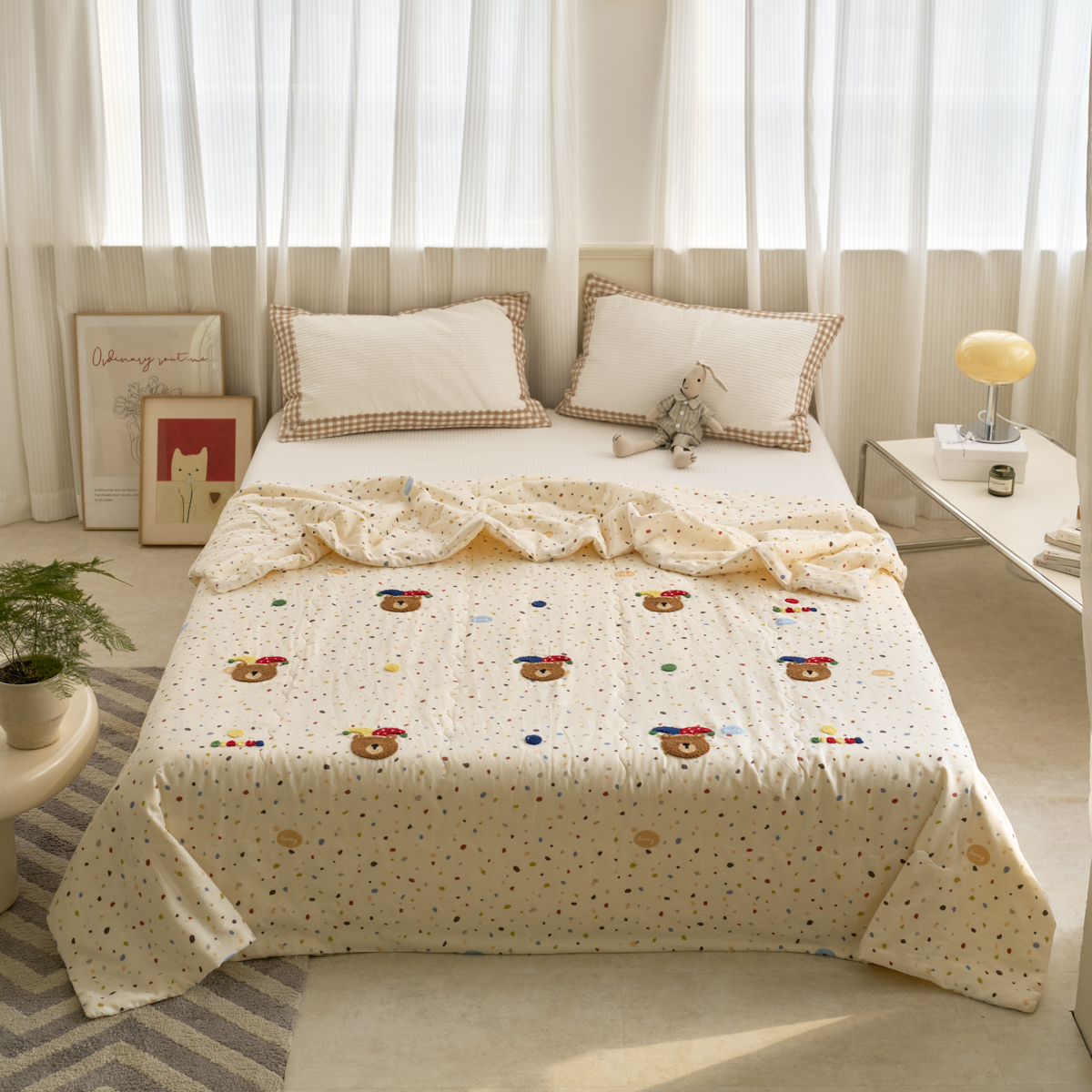 (总)洋铭区 2023新款全棉皱皱双层纱夏被,粉色郁金香,甜萝卜,旺旺熊,微笑,香甜草莓,小花仙,小鸭鸭