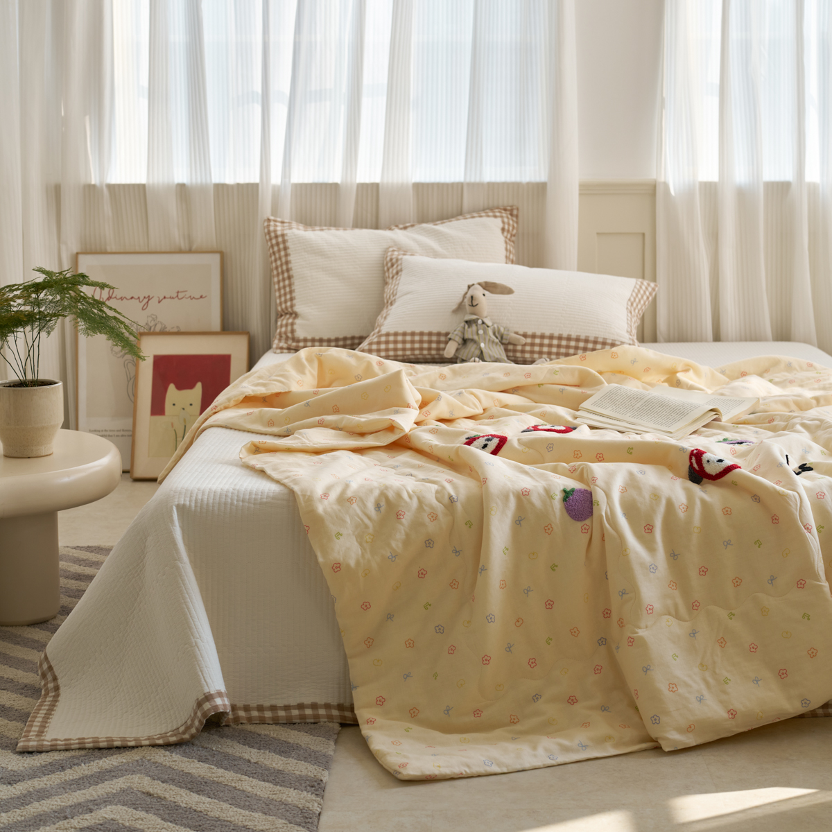 (总)洋铭区 2023新款全棉皱皱双层纱夏被,粉色郁金香,甜萝卜,旺旺熊,微笑,香甜草莓,小花仙,小鸭鸭