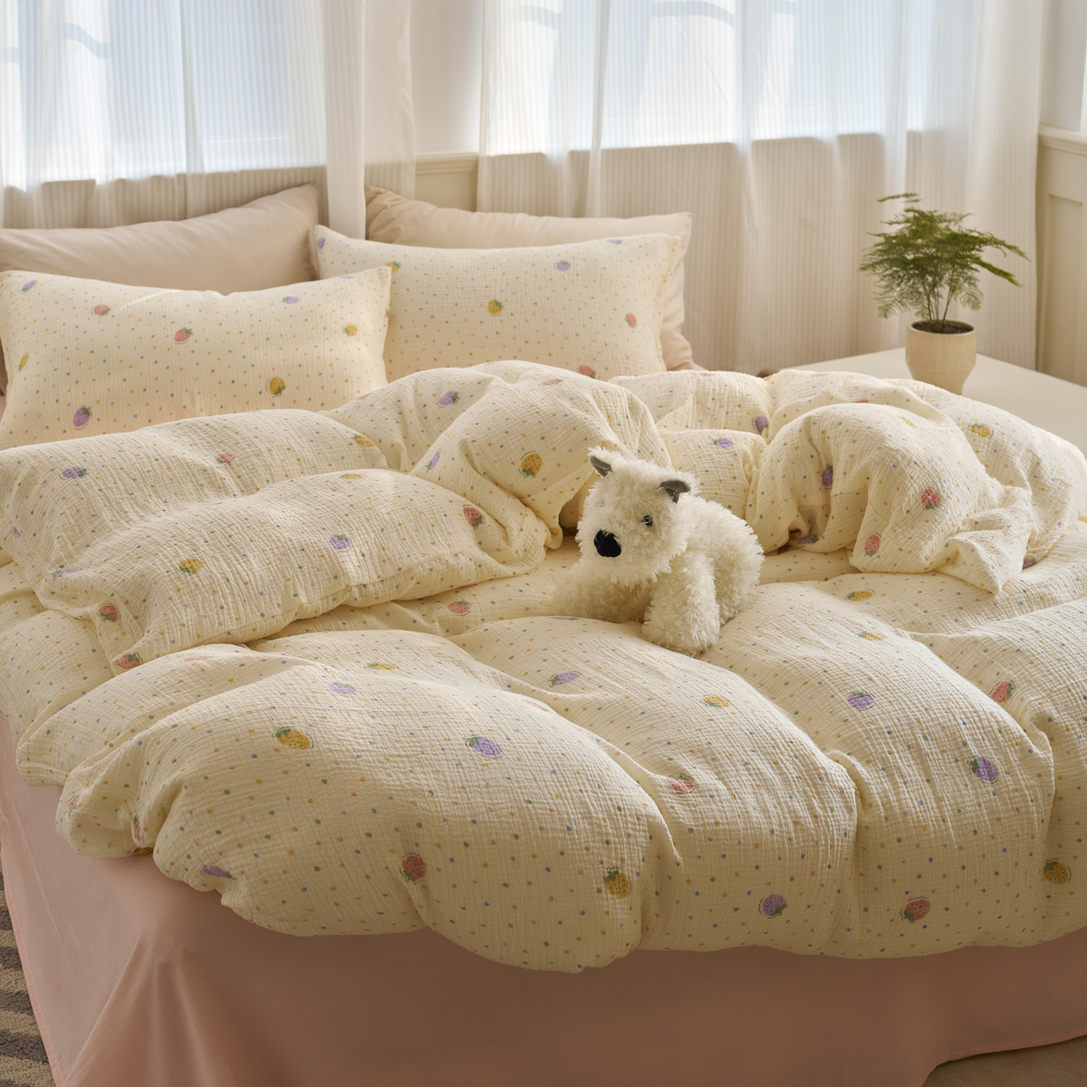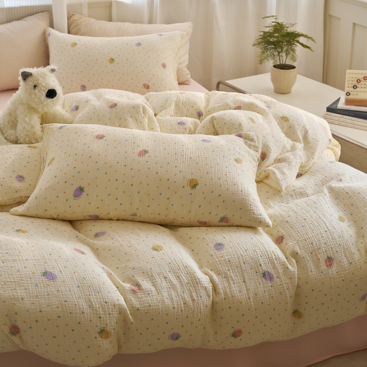 (总)洋铭区 2023新款全棉皱皱双层纱夏被,粉色郁金香,甜萝卜,旺旺熊,微笑,香甜草莓,小花仙,小鸭鸭