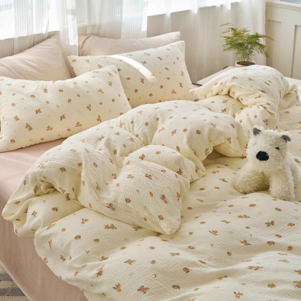 洋铭区(原狠狠爱) 2025新款全棉纯棉皱皱纱四件套 星月天空