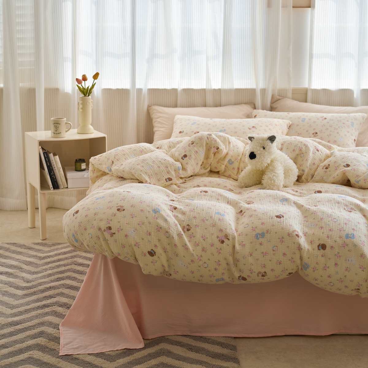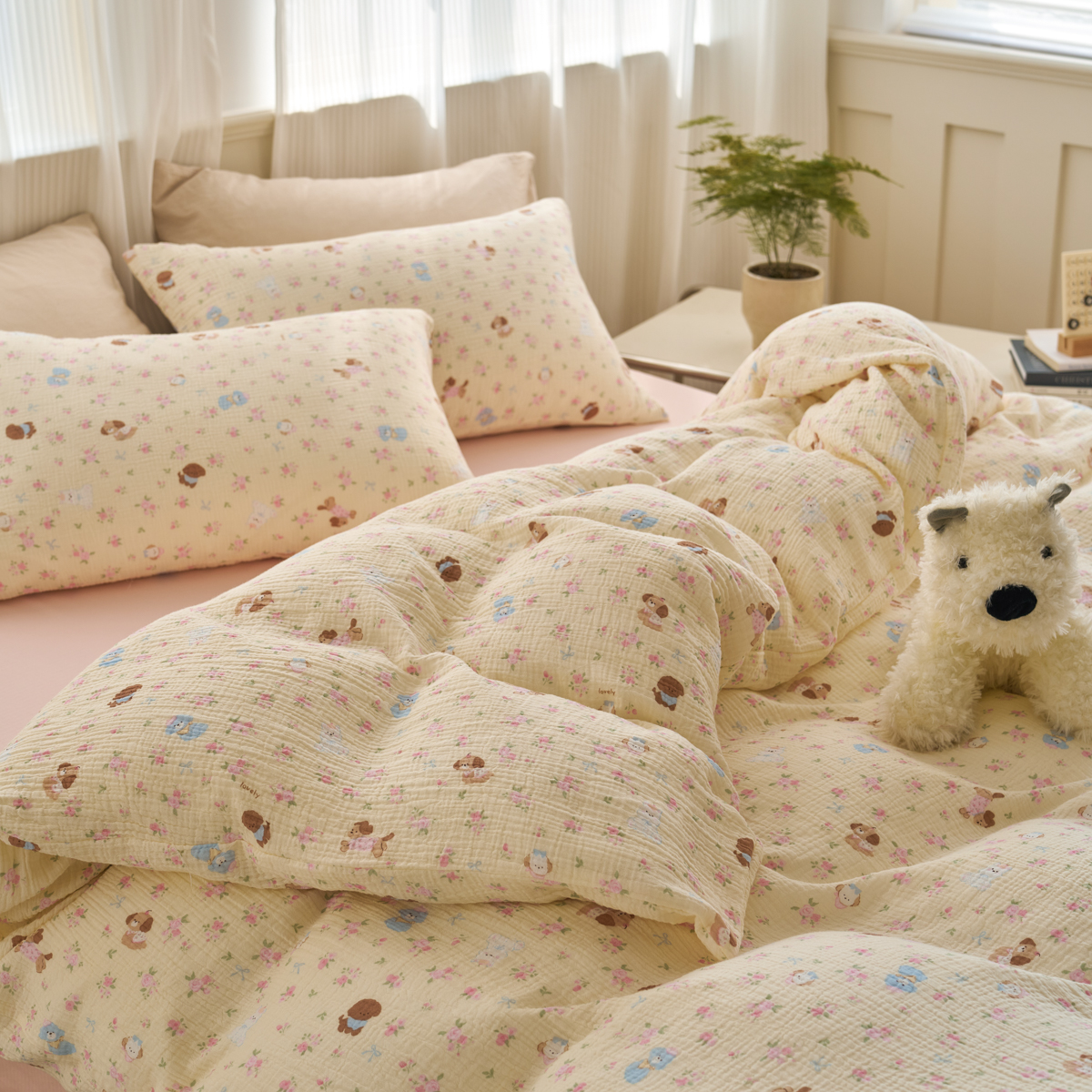 (总)洋铭区(原狠狠爱) 2026新款春季全棉彩边双层纱四件套,爱心宝莉,波斯小懒狗,繁花兔兔,格格小熊,海蓝小木马,红格小马,红枣小兔,花朵兔兔,焦糖小熊,兰花香,绿芽小马,萌宠小分队,奶茶蝴蝶结,奶糕熊熊,汽车派对,桃桃粉花,甜果小象,图图小狮子,幸运小可爱,熊猫嘟嘟,遇见粉花,月光宝宝
