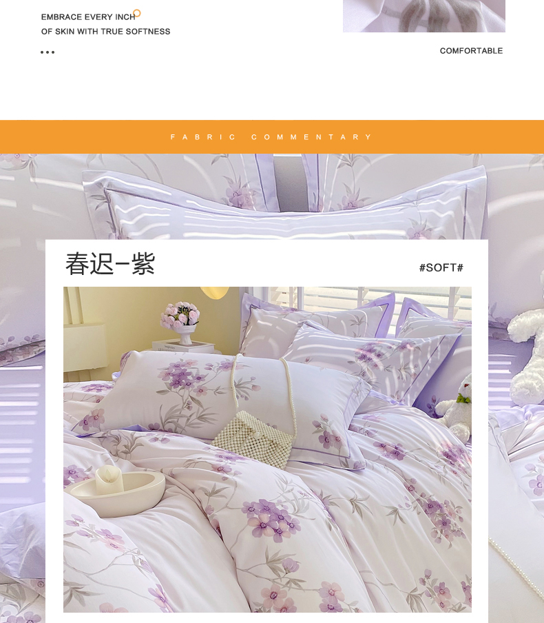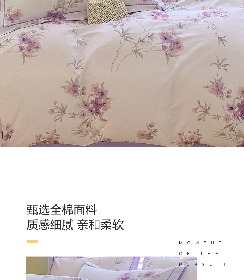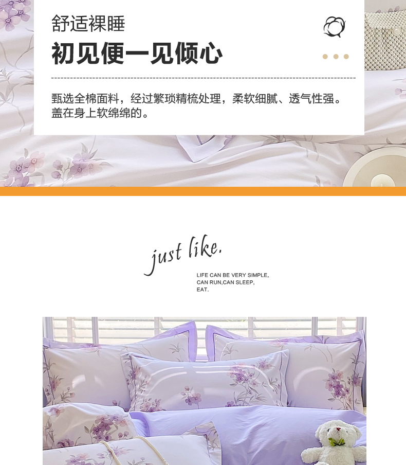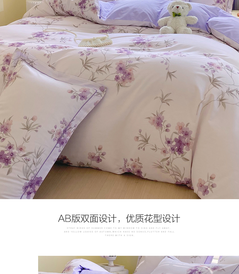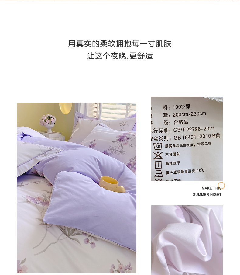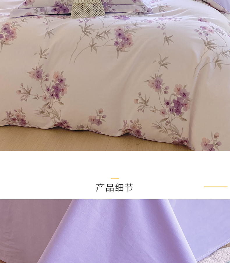 当前位置: 91家纺网 > 商品网购 > 床品套件 > 四件套 > 全棉普通四件套 > 星期三家纺 2025年5月春夏新款铂金全棉13372四件套(加老板微信有会员价) 春迟-紫