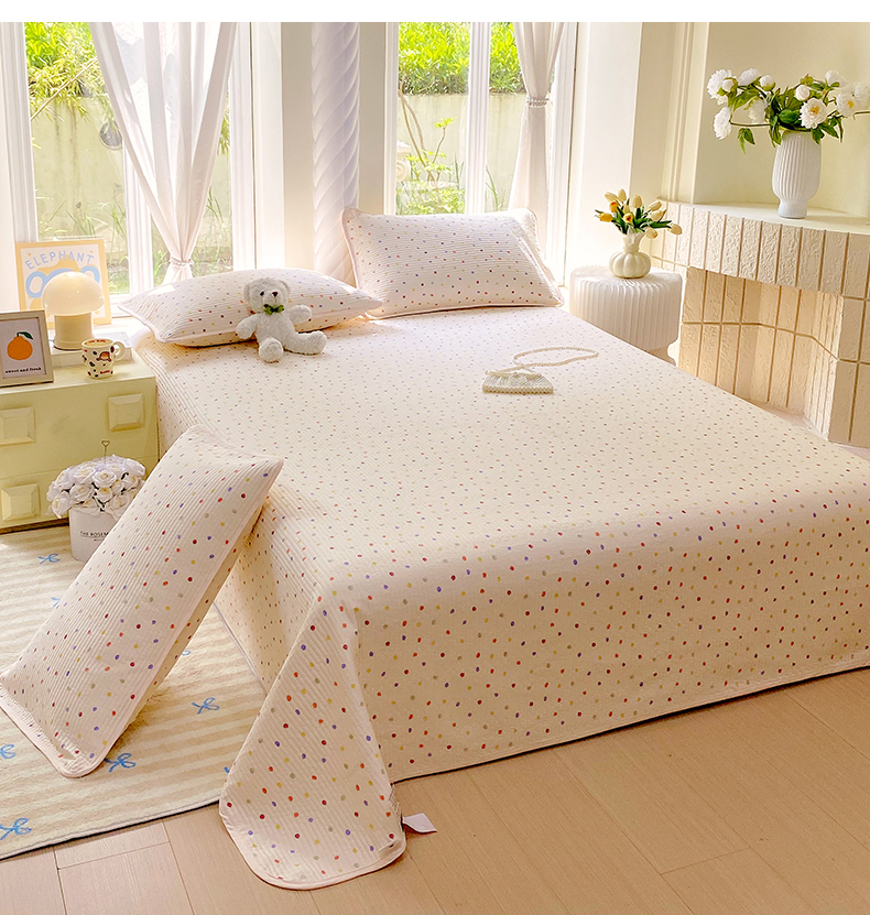 (总)金丝兔 2025新款小清新亲肤印花水洗棉单床盖 夹棉床盖 床盖三件套,巴黎恋人,呆呆熊,黑樱桃,卡皮巴拉,西高地,小灰格,小樱结-灰,樱桃小格