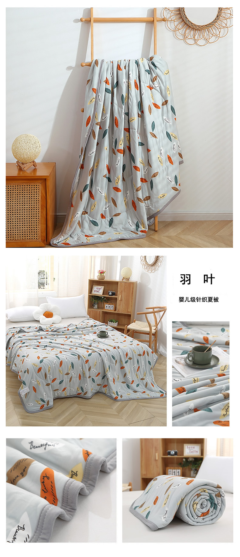 商品名称:贝兰仙奴 2025新款针织棉夏被 羽叶