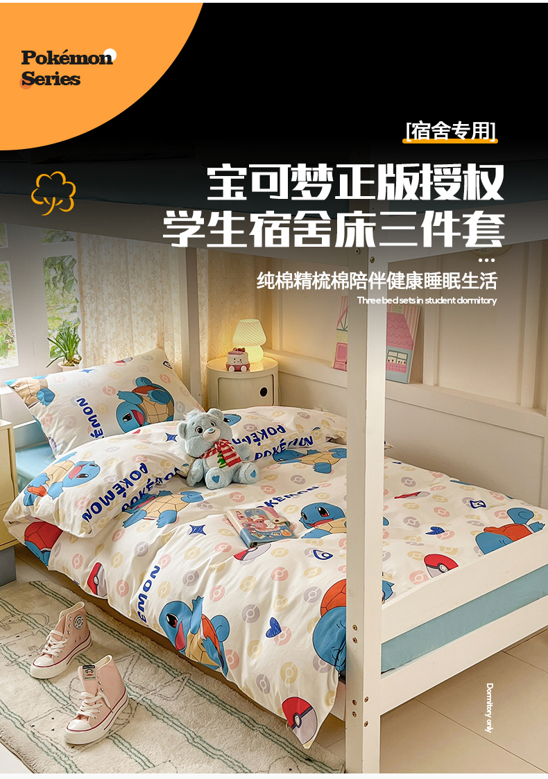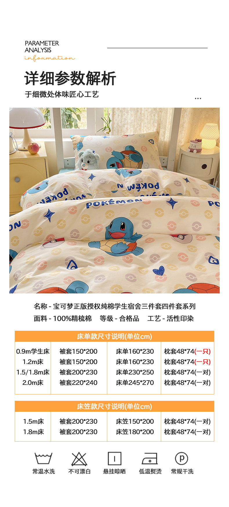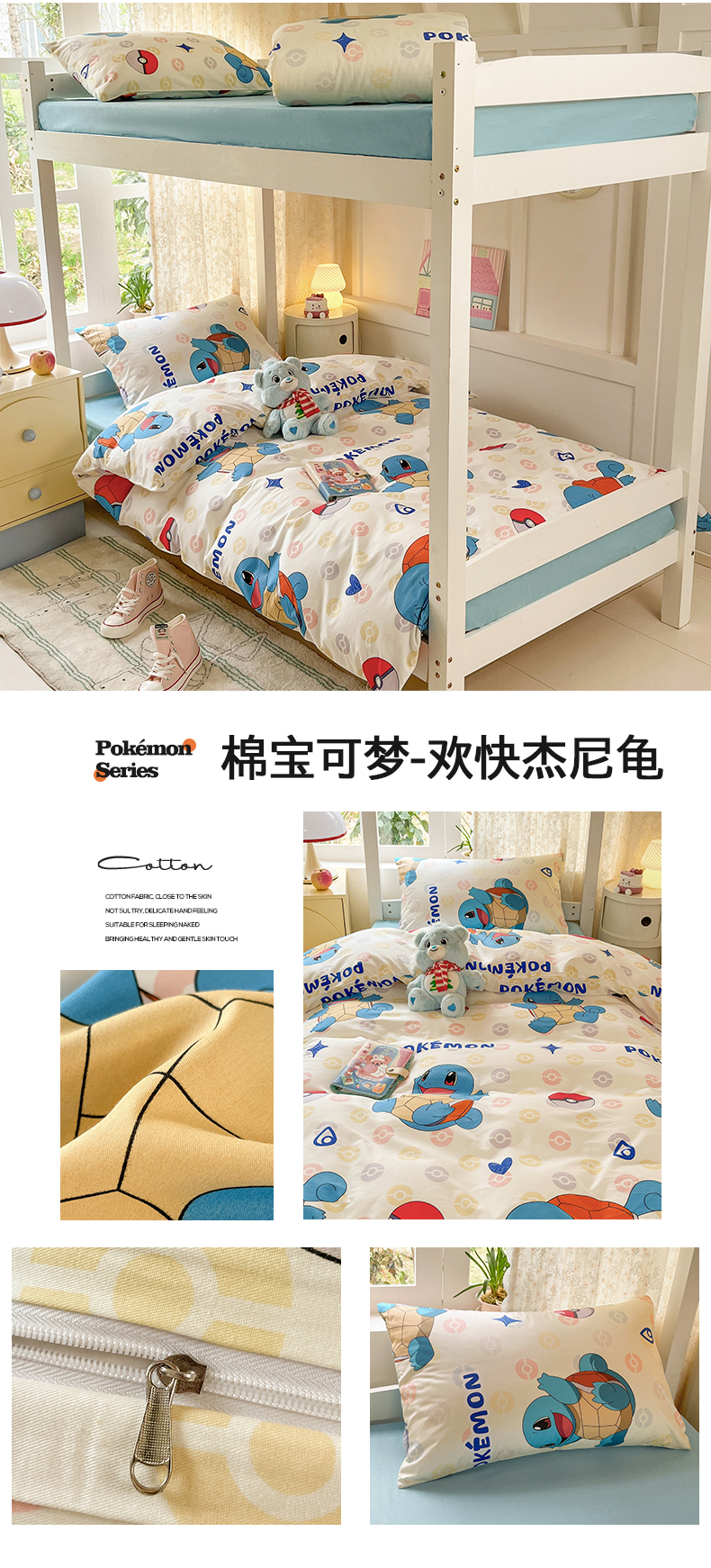 当前位置: 91家纺网 > 商品网购 > 床品套件 > 四件套 > 全棉普通四件套 > 金爱家 2025新款宝可梦正版授权纯棉卡通皮卡丘学生宿舍三件套四件套系列 棉宝可梦-欢快杰尼龟