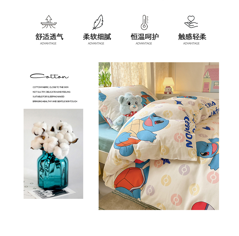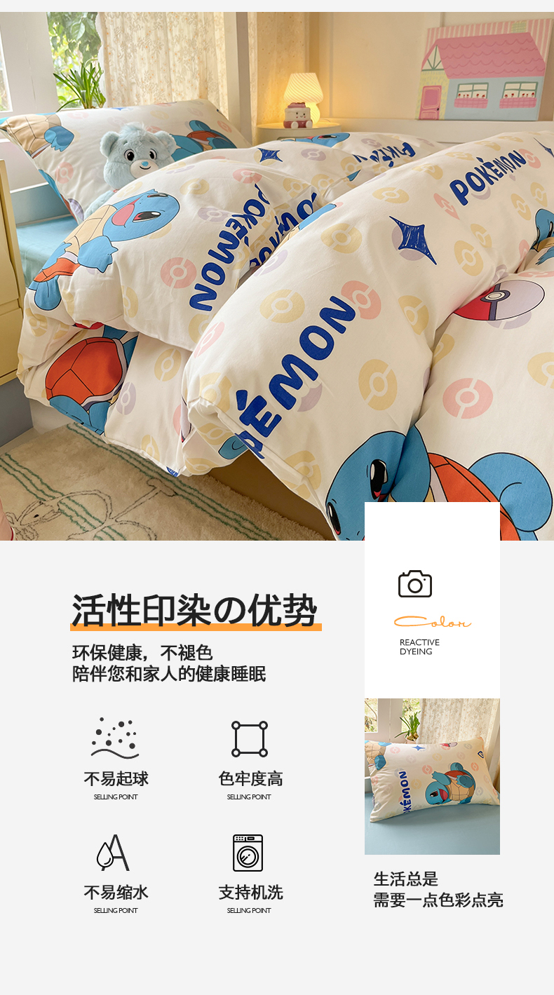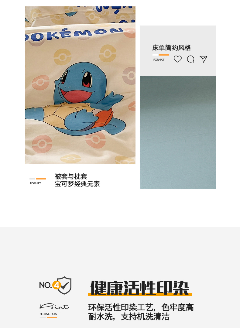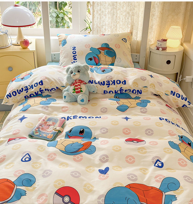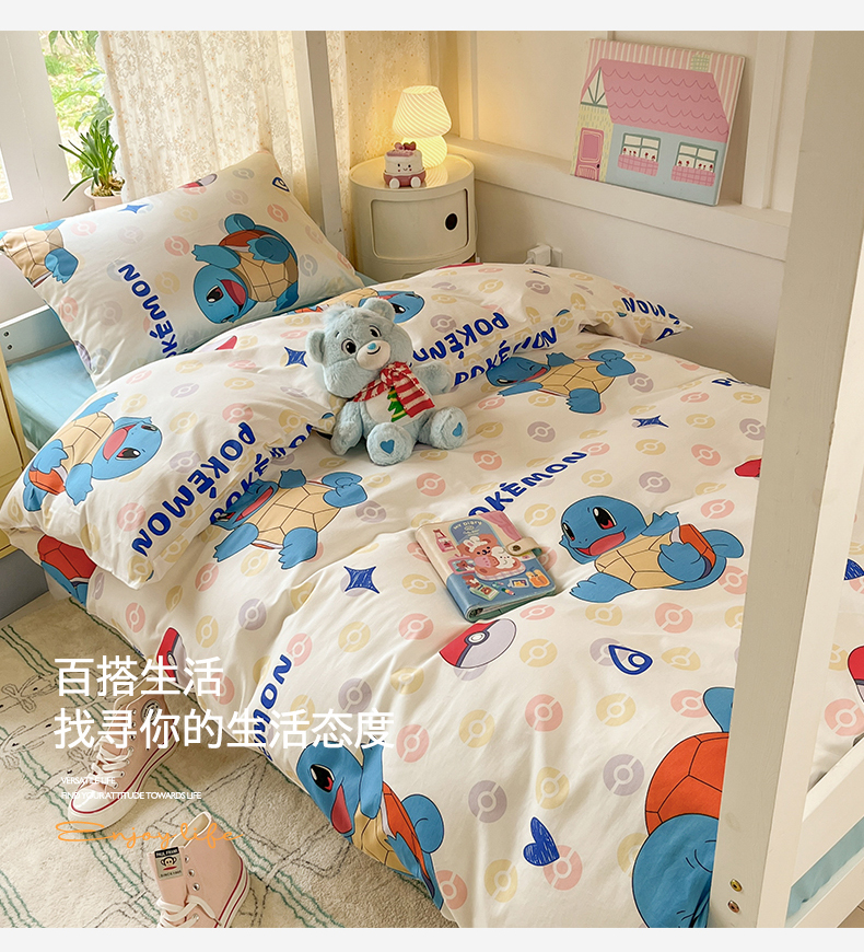 当前位置: 91家纺网 > 商品网购 > 床品套件 > 四件套 > 全棉普通四件套 > 金爱家 2025新款宝可梦正版授权纯棉卡通皮卡丘学生宿舍三件套四件套系列 棉宝可梦-欢快杰尼龟