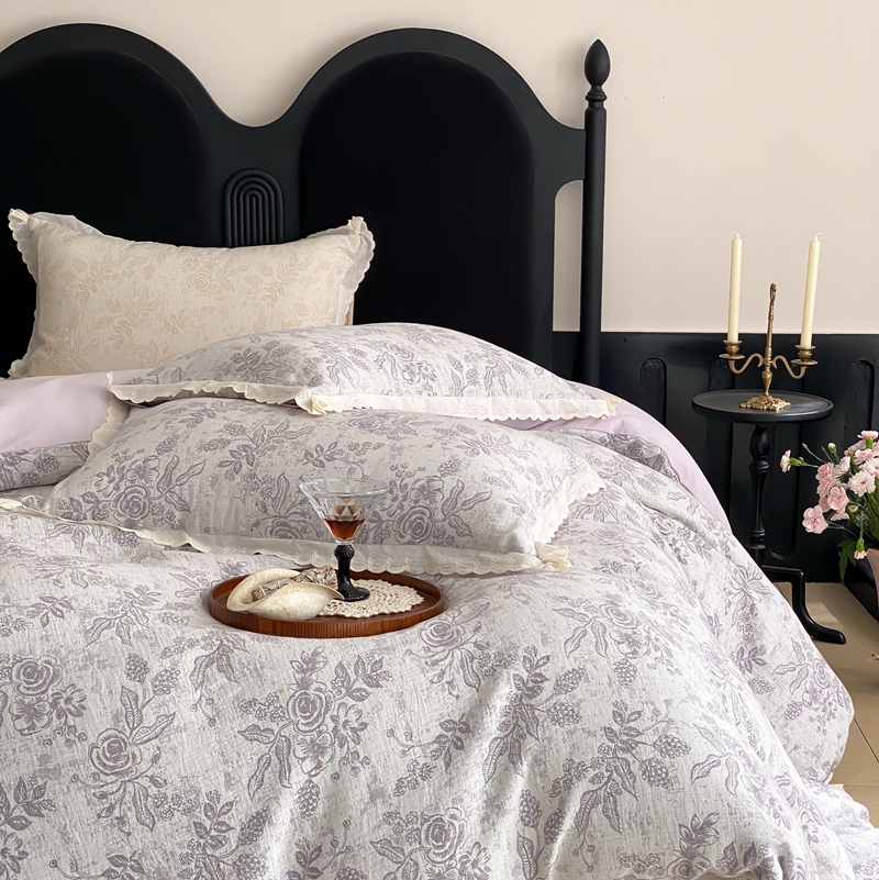 商品名称:梦享生活家居2025新款色织全棉双层纱提花四件套 洛莉紫