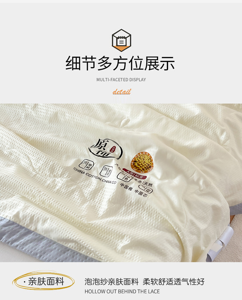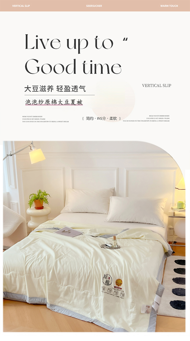 商品名称:VIP被业 2025新款原棉夏被针织棉大豆夏凉被子被芯夏被被子空调被 米色
