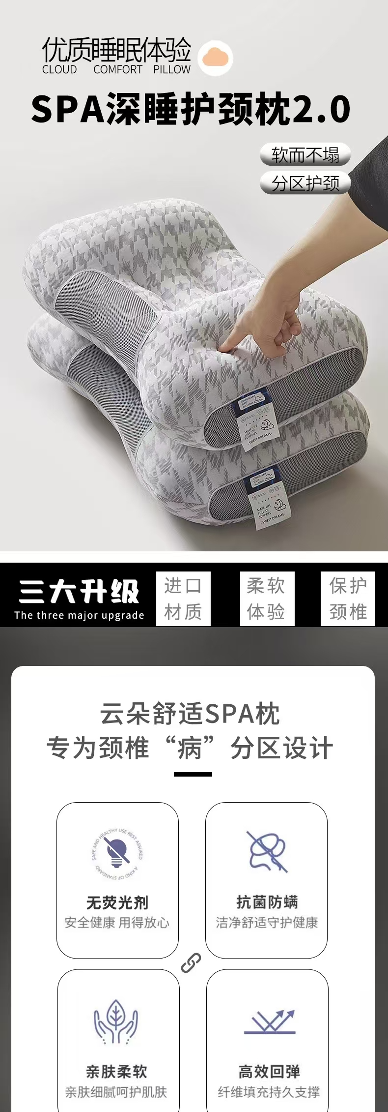 当前位置: 91家纺网 > 商品网购 > 枕头/枕芯/保健枕/颈椎枕 > 佳尚枕芯 2025新款千鸟格大蜂窝spa枕头枕芯 千鸟格提花spa枕 40x60cm/只-低枕