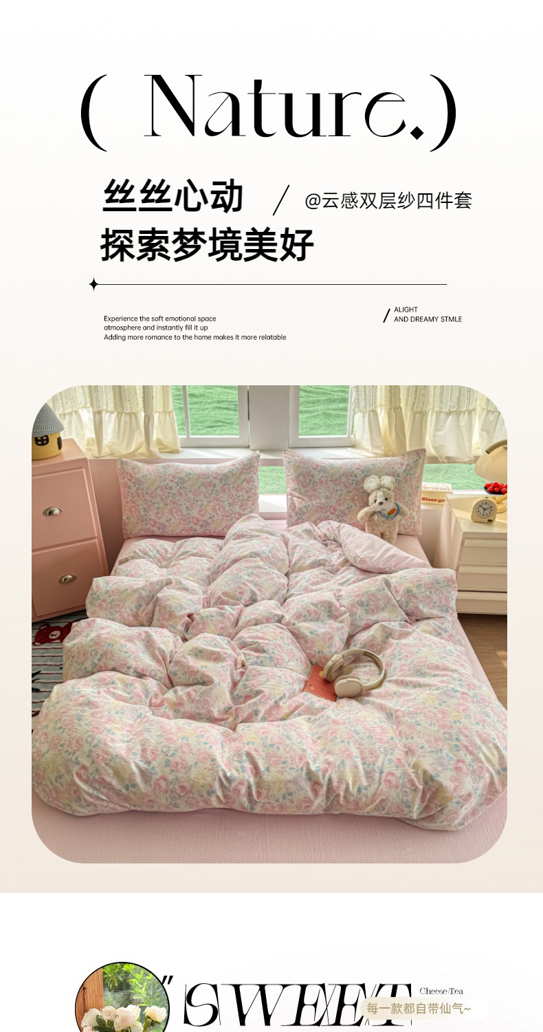 当前位置: 91家纺网 > 商品网购 > 床品套件 > 四件套 > 双层纱四件套 > 艾特你 2025新款云感针织双层纱四件套 晚香玉