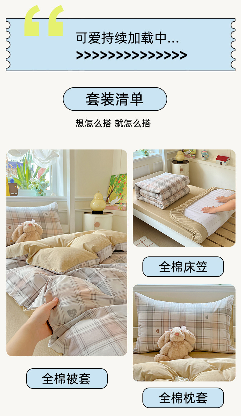 当前位置: 91家纺网 > 商品网购 > 床品套件 > 三件套 > 三兄弟 2025新款全棉印花学生三件套床单床笠四件套被套 拿铁米